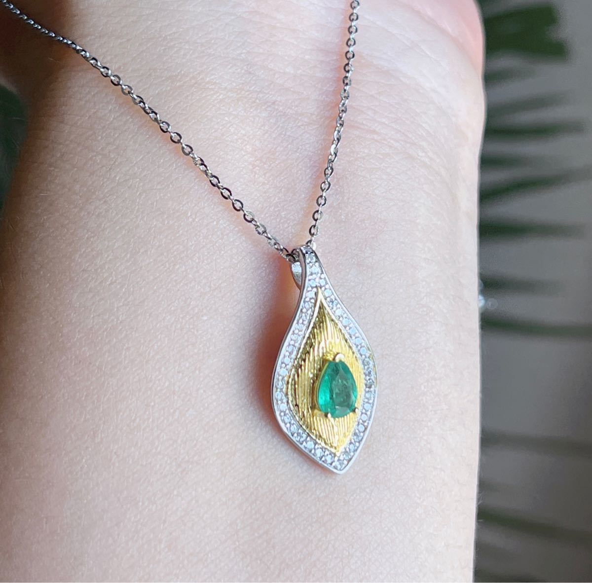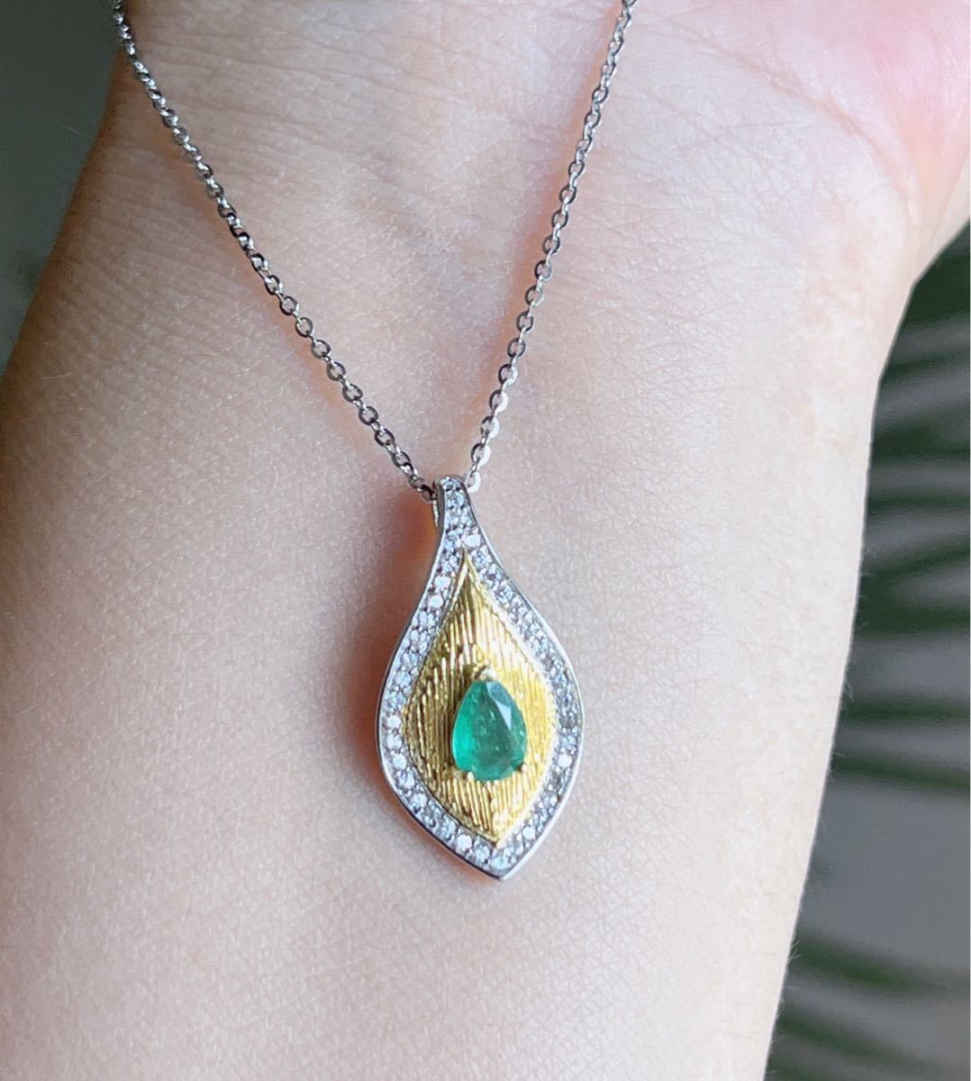 天然石 逸品エメラルドのペンダントのサイズ約:11.9mm*23mm*厚さ4mm;