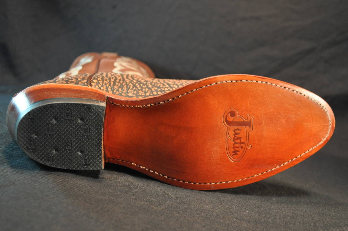 アメリカ老舗ウエスタンブーツメーカー ジャスティン社製 革底 新品 箱無 幅並 筒高33.5㎝ ヒール高4.5cm ノークレームノーリターンにてお願いします。ゆうパック100サイズ (送料金額及び発送方法についての交渉、希望指定はできかねます) 本物の価値の判る方で、USサイズご確認のうえご入札ください。以下の方は入札お断り 当方が判定:出品欄記載事項熟読しない方 日本語が正しく使えない方 日本の常識礼儀を理解しない方 状態に関して神経質な方 細かい交信確認をしないと心配な方 必要以上の情報の記載、要求をする方(特に業者) 以下の方は問答無用で落札者都合で削除:次点の落札者がいらっしゃる場合、落札後24時間以内に連絡無いまたは48時間以内にお支払い無い方。取引ナビ以外での取引を求める方。落札後に商品の質問交渉をする方(特に住所氏名を名乗らずにする)。初交信で連絡先を記載されない方。出品覧に明記してあるにも関わらず送料、合計金額の確認を求める方。評価の悪い方。評価欄に品位の無い文章で誹謗中傷を書いている方。その他常識礼儀に欠ける方 落札日近くの質問、及び愚問には回答いたしません。領収書の発行はしません。発送番号通知は致しません。(遅延事故の際はこの限りではありません。)