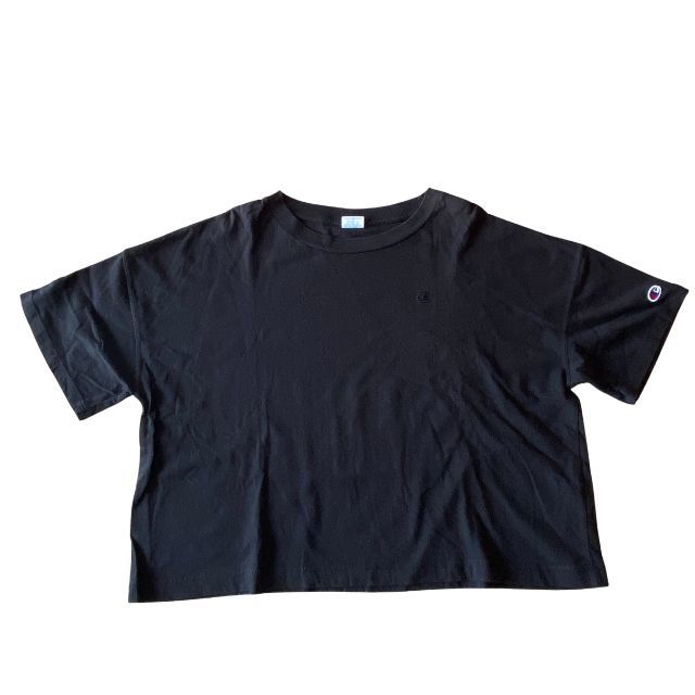 美品 チャンピオン ブラックTシャツ ショート丈 ビッグシルエット ゆるダボ  Champion レディース 使用感薄い美品 雅瀬126