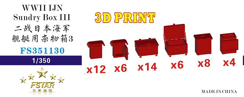 1/350 WWII IJN 日本海軍 艦艇用雑具箱3 3Dプリンター製セット 50隻入 |