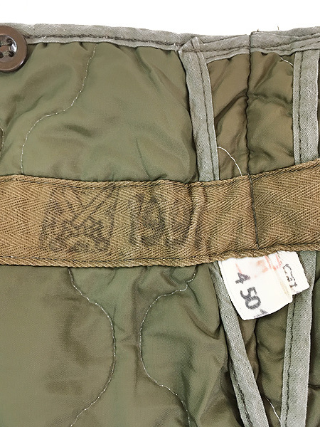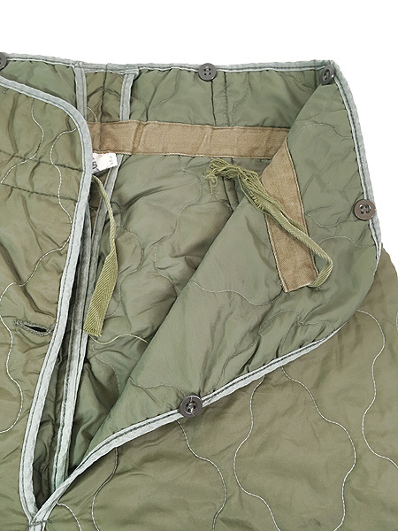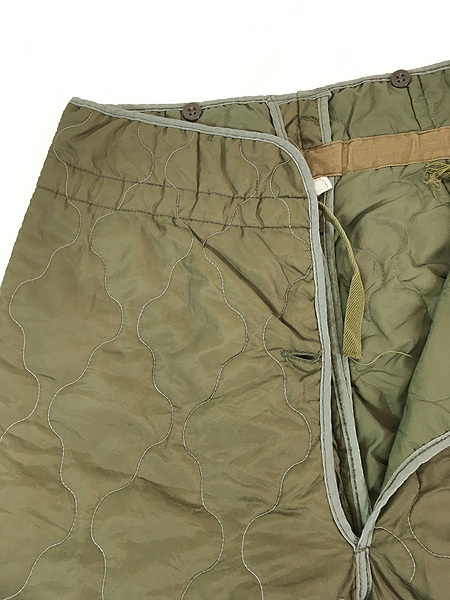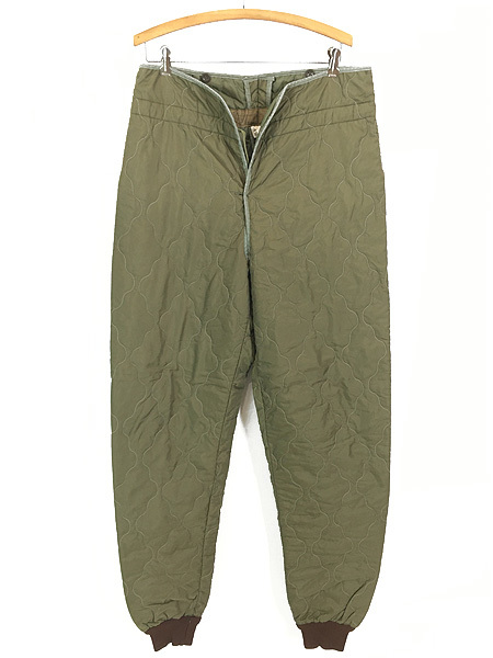 中綿入りナイロンキルティング・ボタンフライ・ウエスト紐・裾リブ。