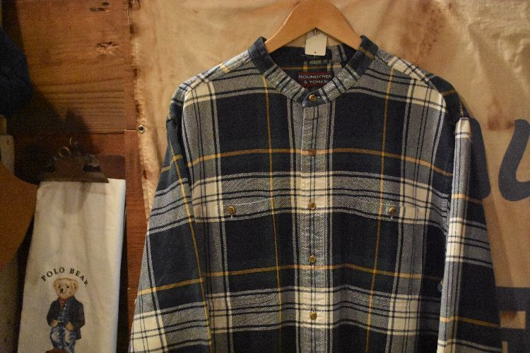 90年代ラウンドツリーアンドヨークのノーカラーチェックシャツになります。
