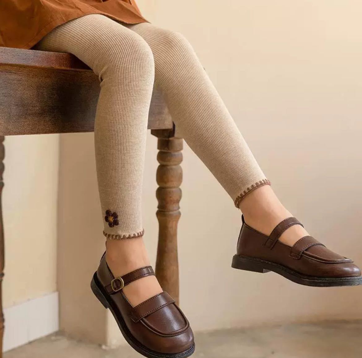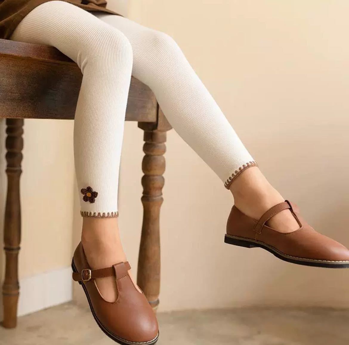 かわいい花柄 ワッフルコットン 子供用レギンス キッズ 女の子 ベージュ 130