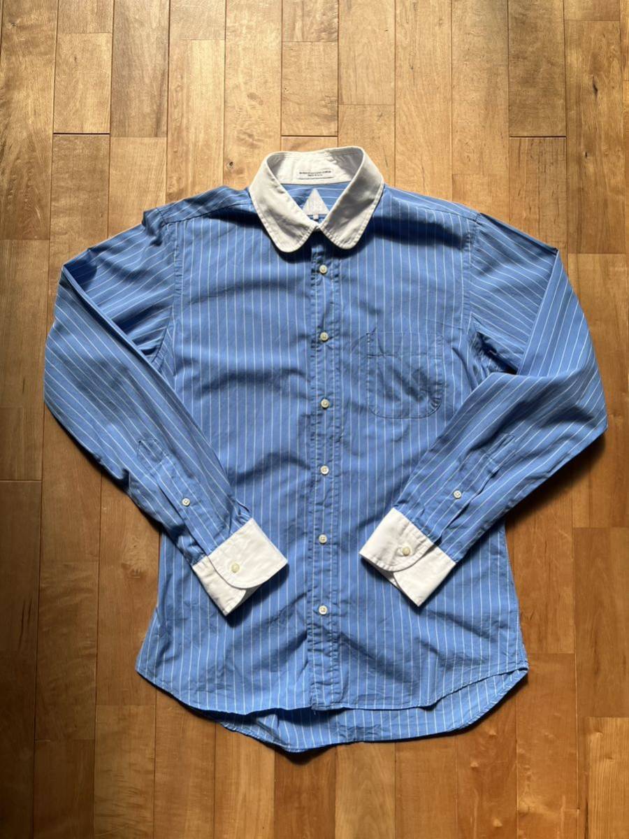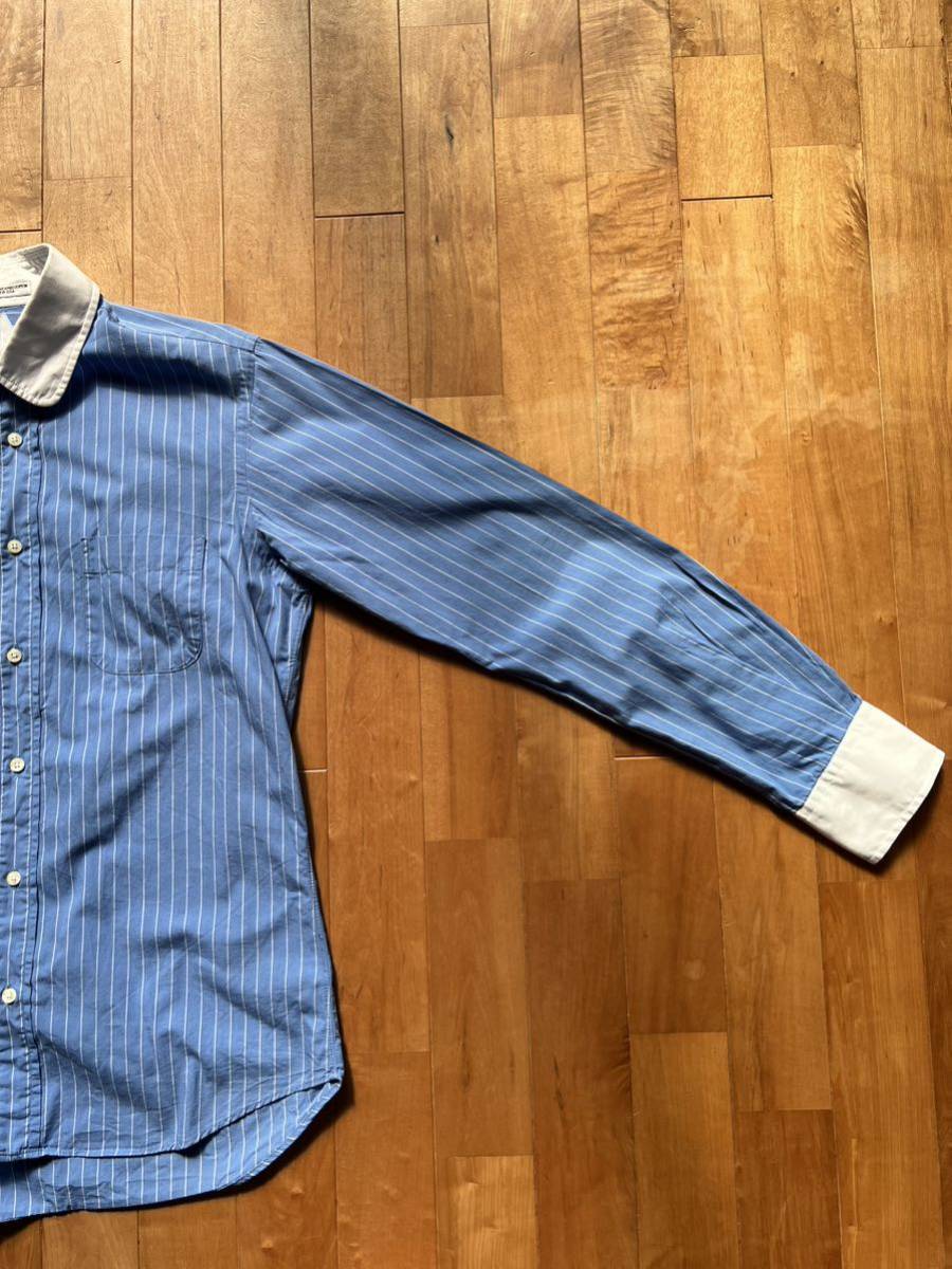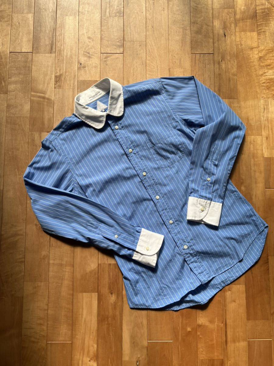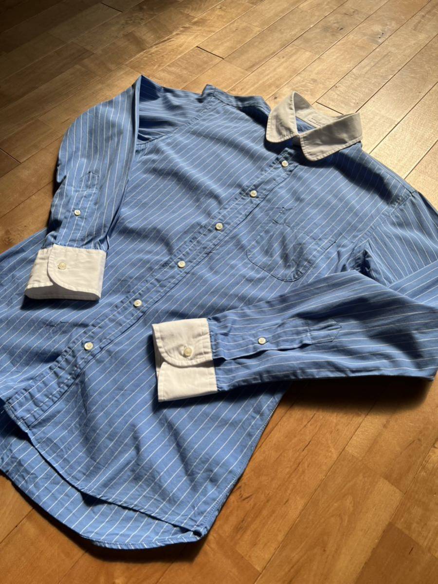 これに甘さのあるホワイトのラウンドカラーがセットされて、かなり計算された美しいクレリックシャツに仕上がっています。