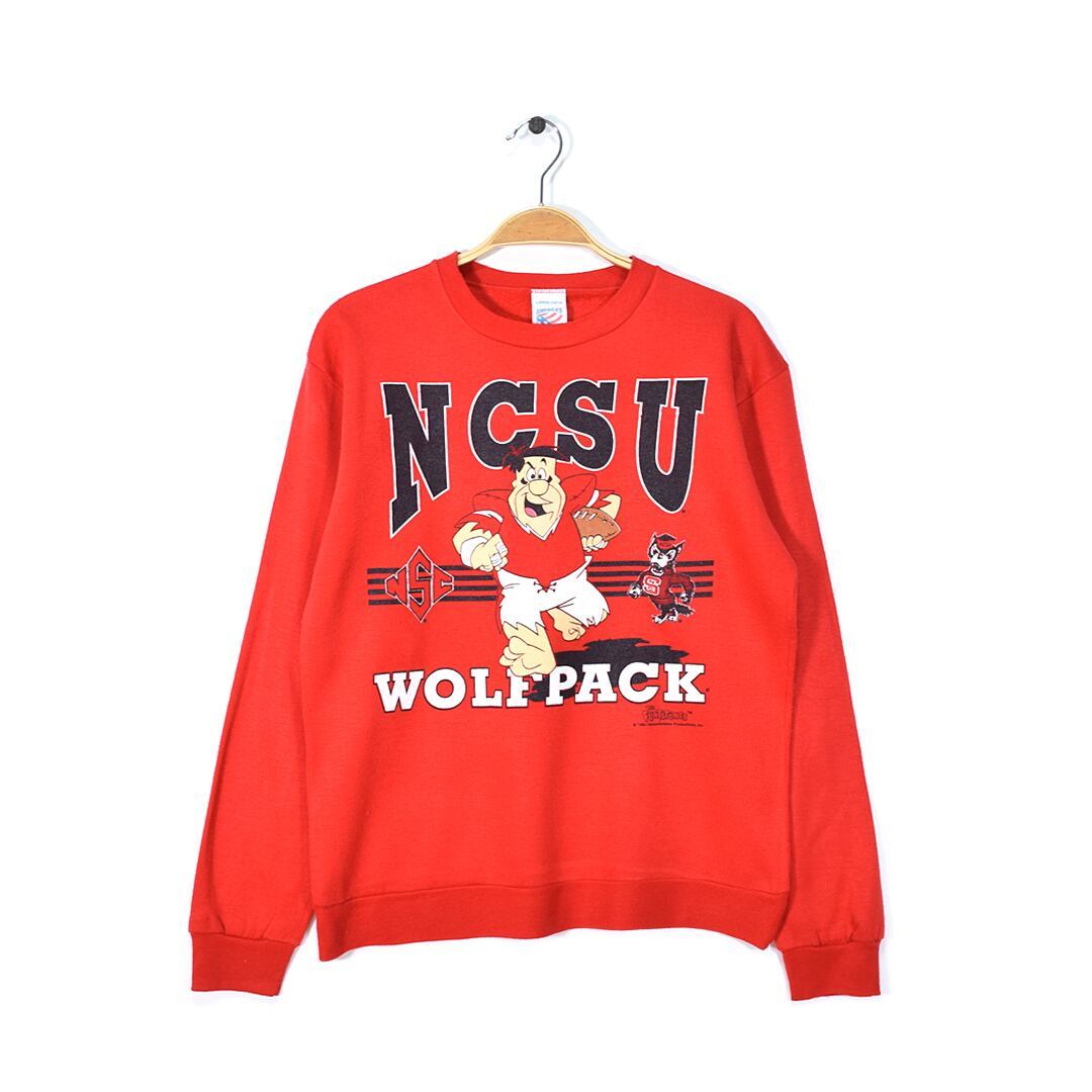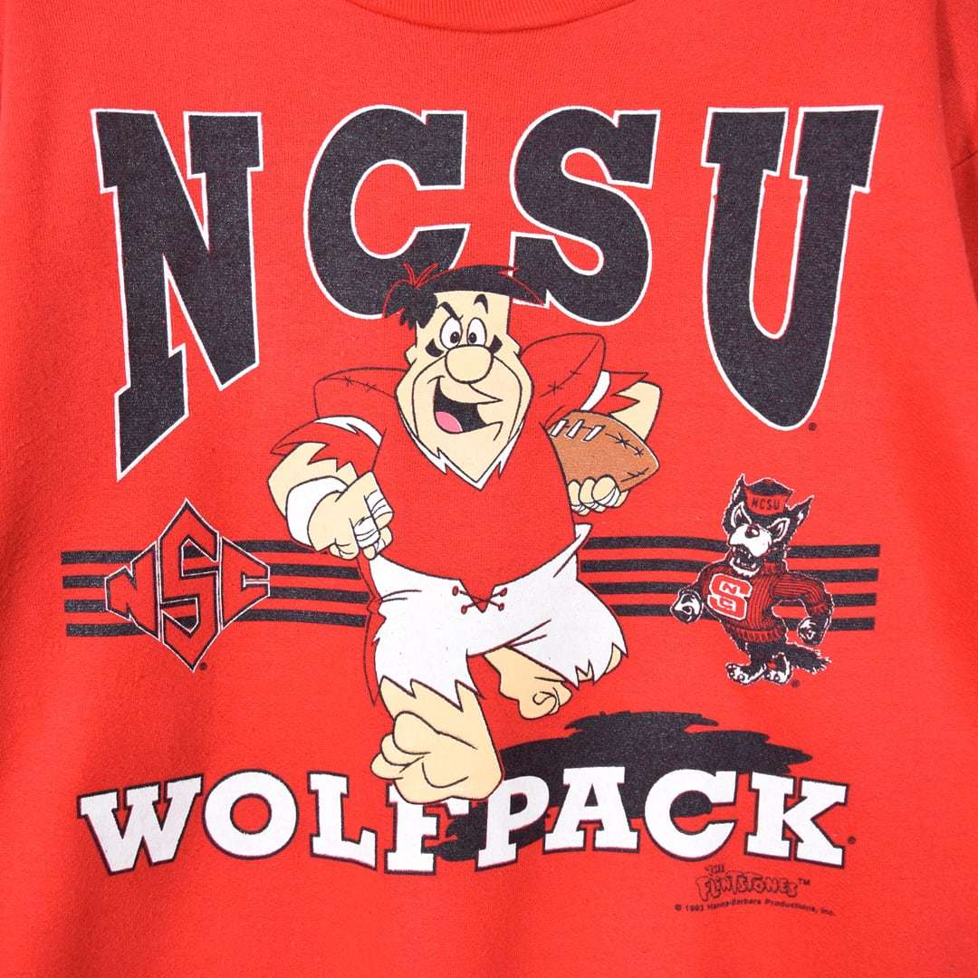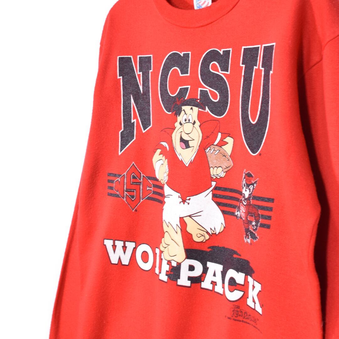 90s ノースカロライナ州立大学 × フリントストーン USA製 ヴィンテージ スウェット 赤 レッド カレッジ メンズS相当 古着 @CF0663