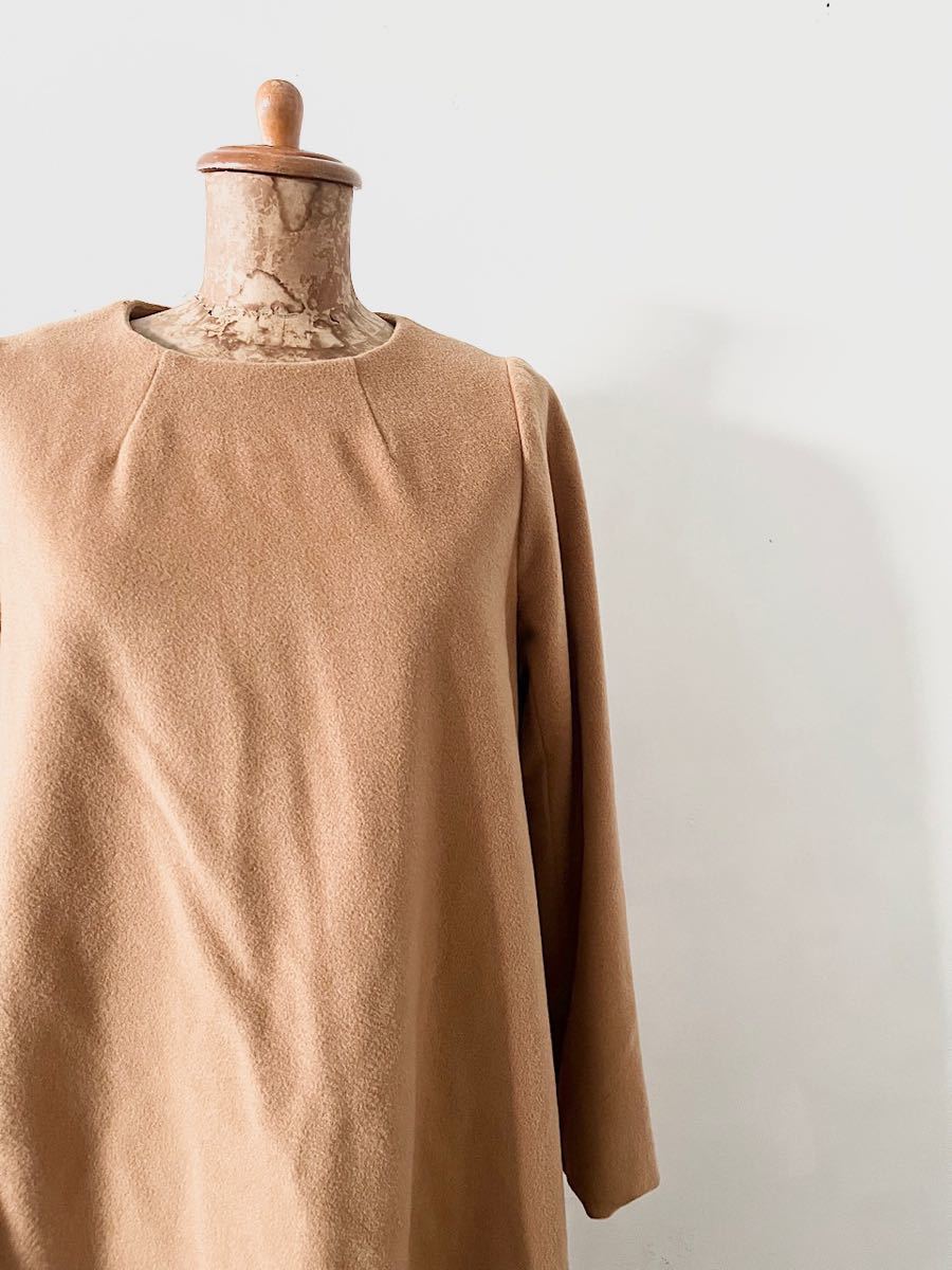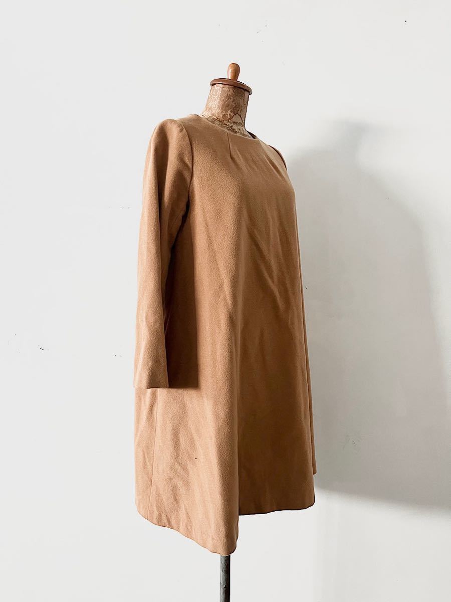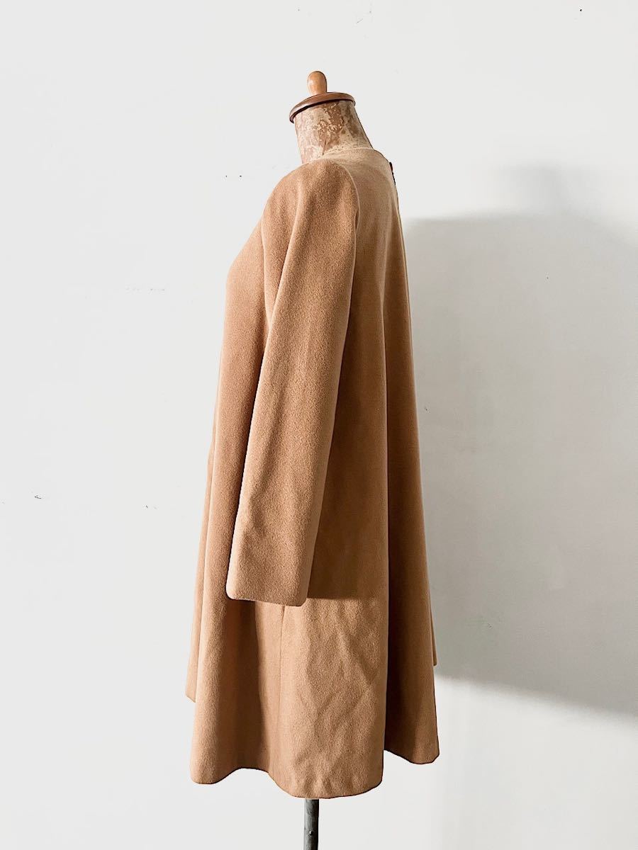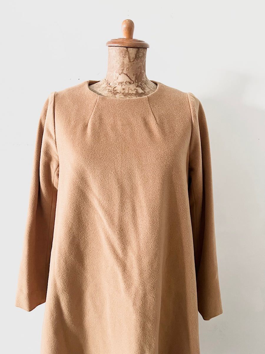 カラーはキャメルで、ウール混素材の肌触りの良い一枚です。