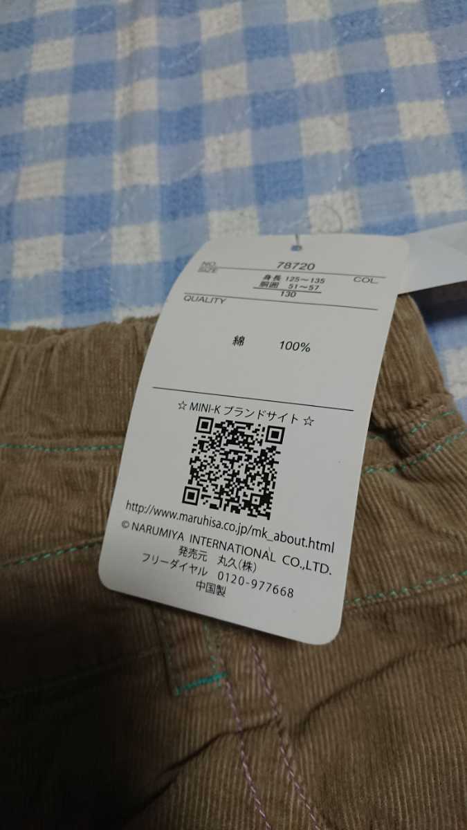 〇♪163☆未使用・保管品☆MINIーK☆コーディロイ切替スカート 淡赤130①