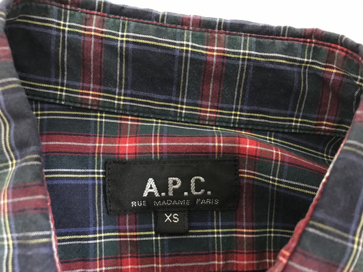 商品名:本物アーペーセーAPCコットンチェック柄長袖シャツメンズサーフミリタリーアメカジスーツビジネス紺赤レッドXSチュニジア製