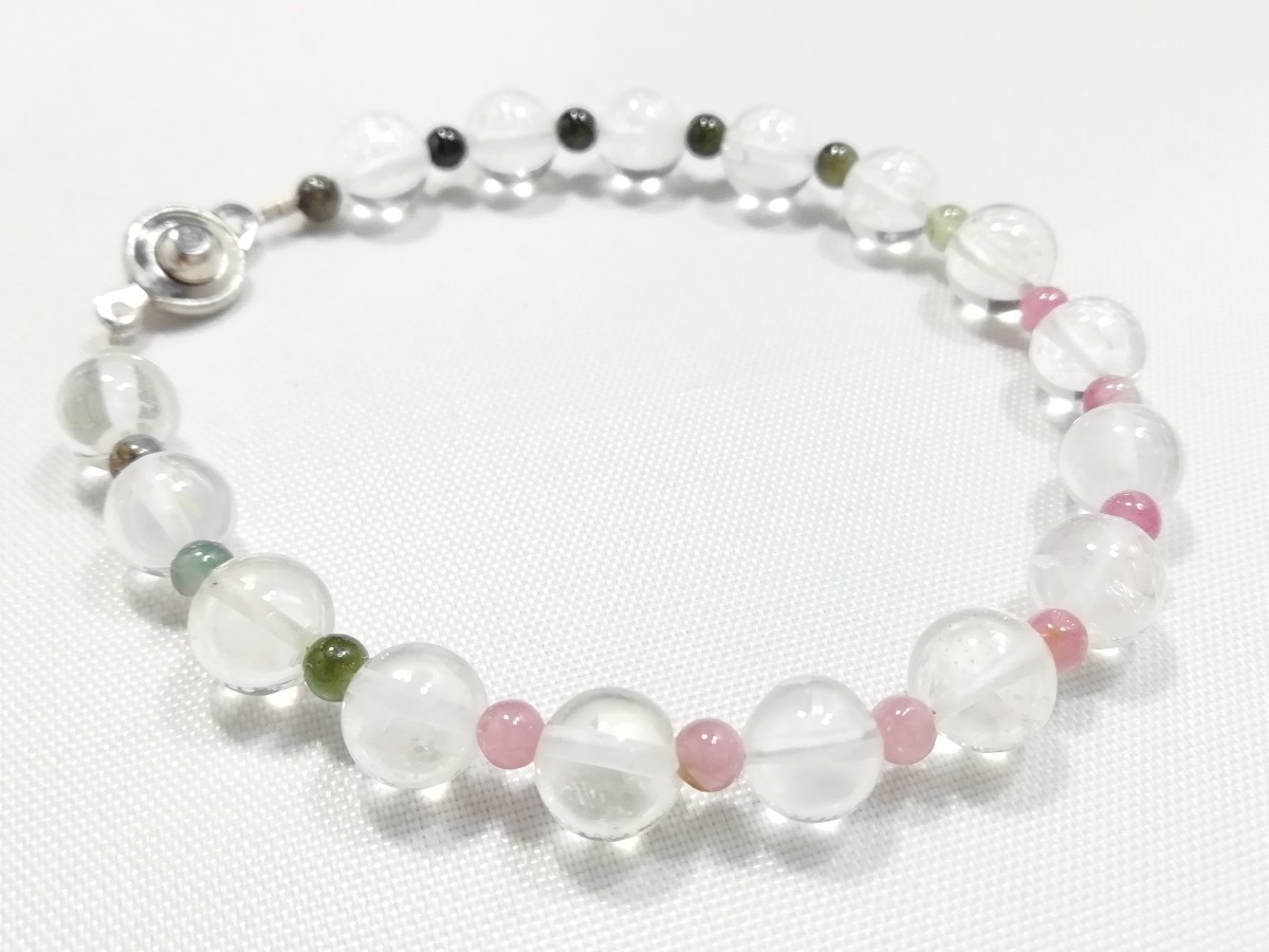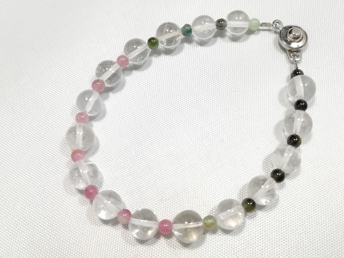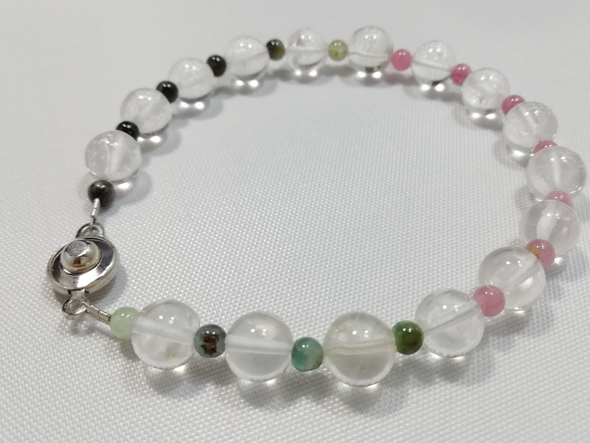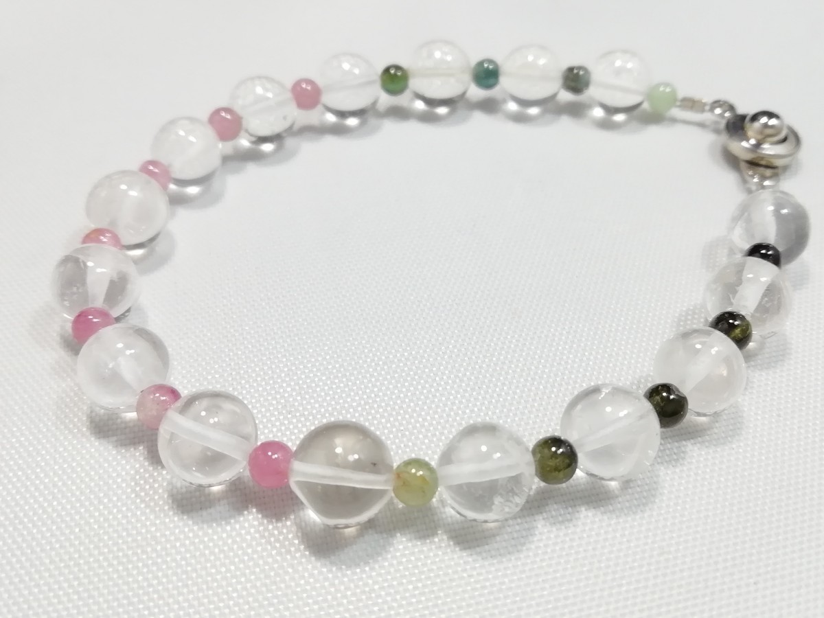 天然丸玉水晶&マルチカラートルマリンパワーコンビブレスレット