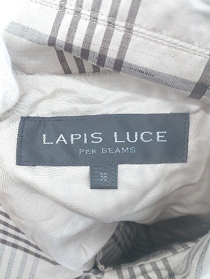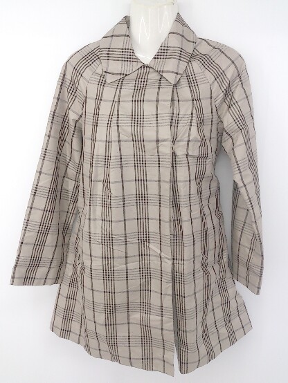 ◇ ◎ LAPIS LUCE PER BEAMS チェック 長袖 ステンカラー コート サイズ36 グレージュ レディース P
