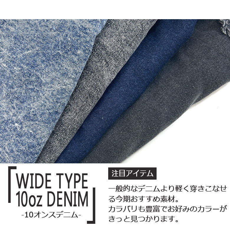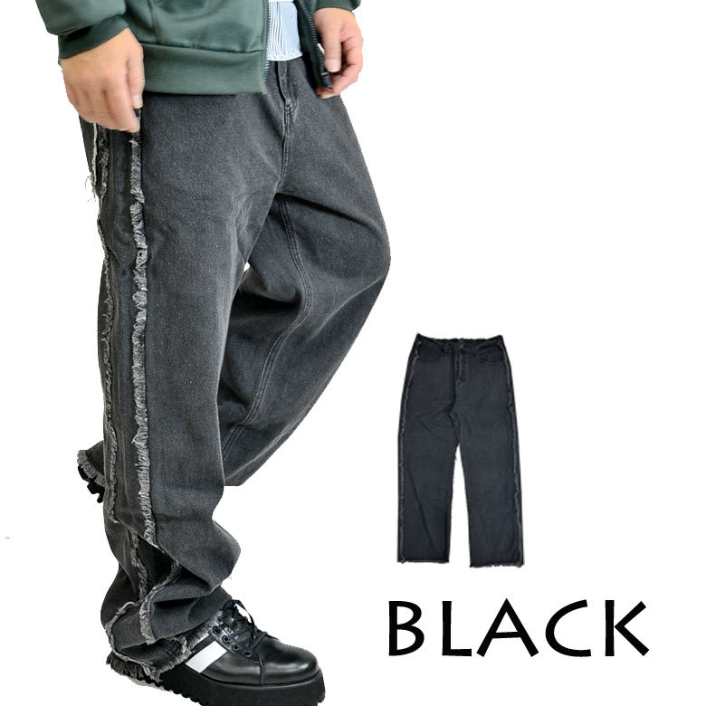 【閉店セール】ワイドデニムパンツ フリンジサイドライン 10ozデニムワイド 4273y233 新品ブラック L