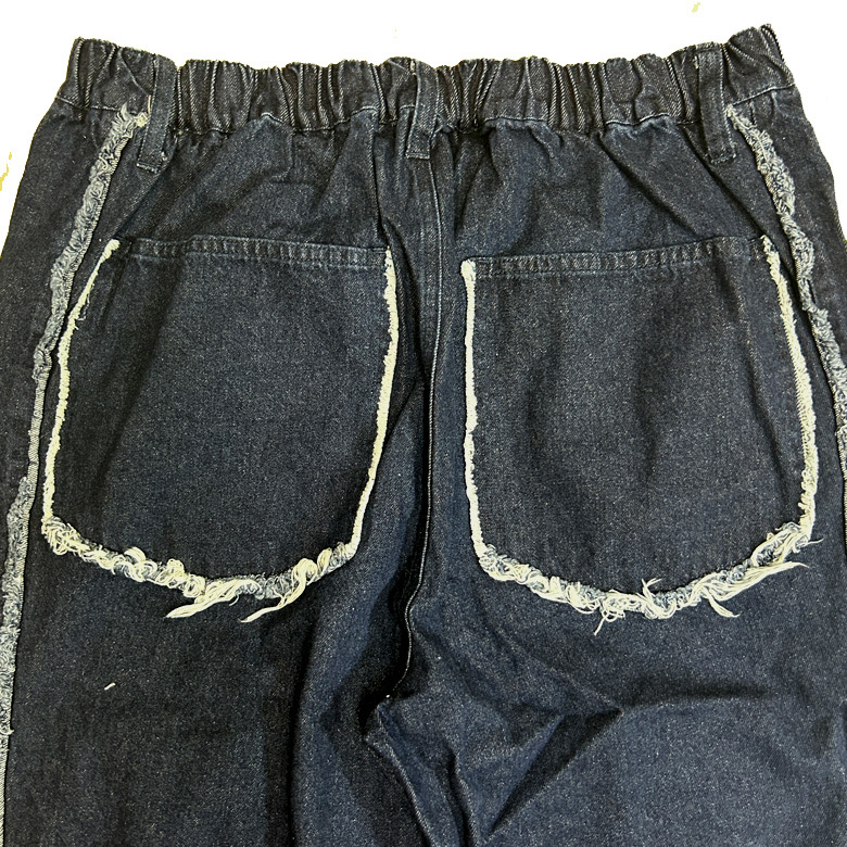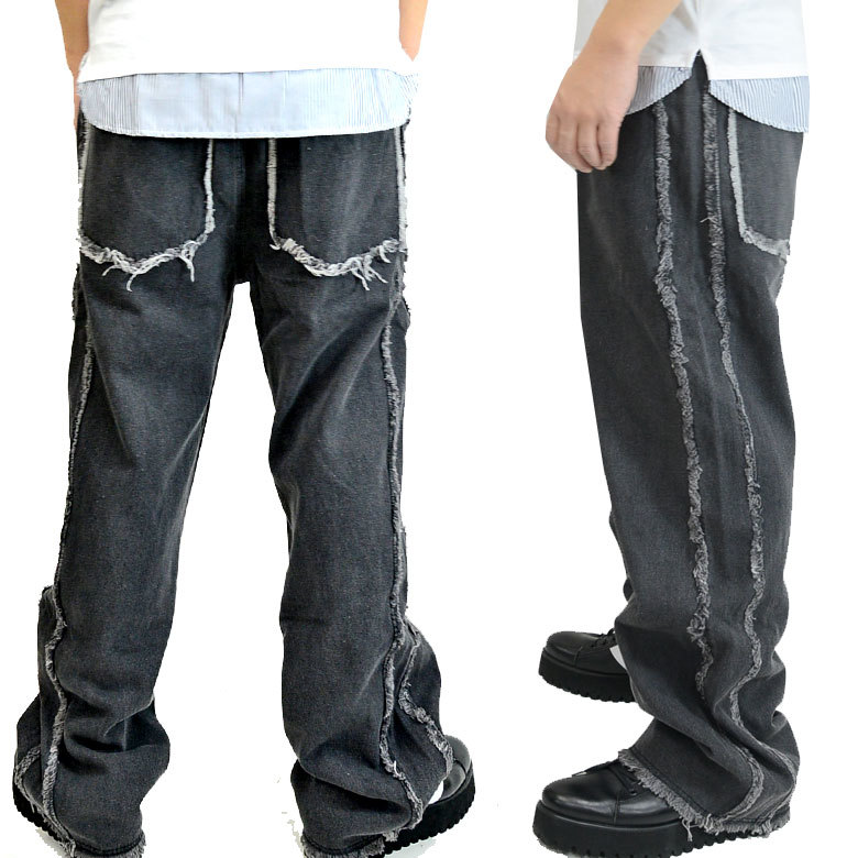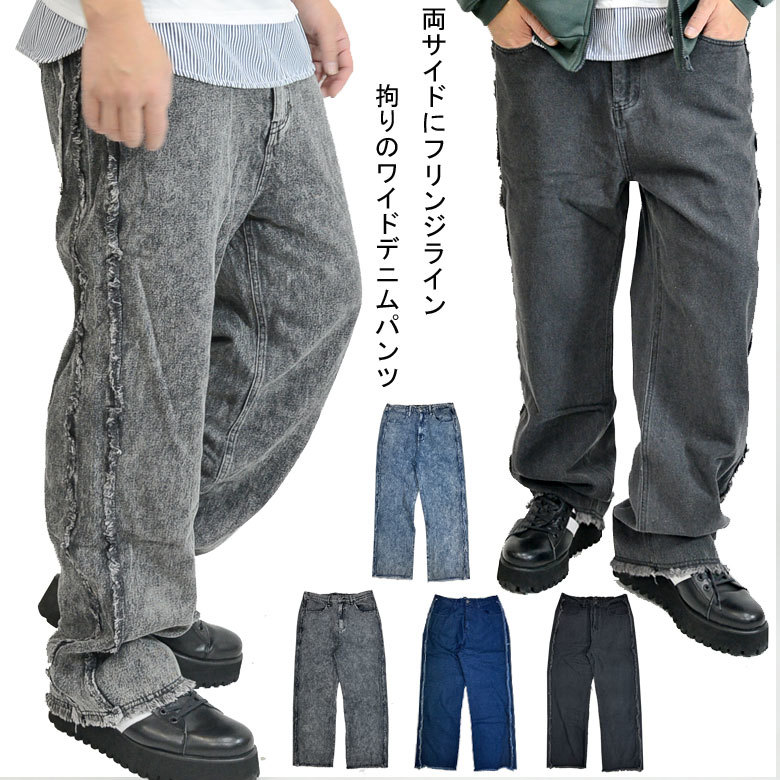 「ルーズシルエットフリンジラインワイドデニムパンツ」