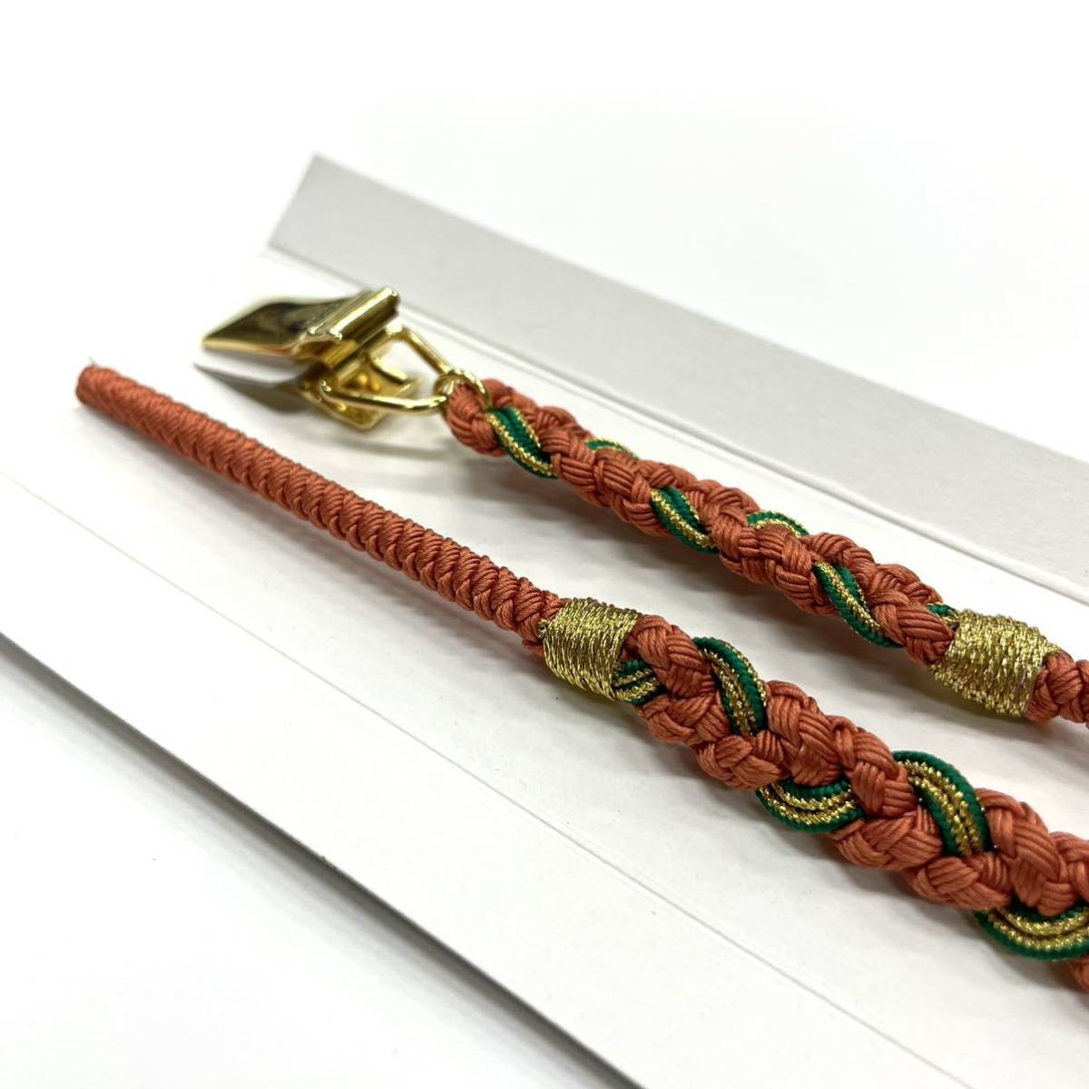 こちらは高級感組紐タイプで伸縮性があり、通常は約48センチの長さですので襟元のナプキン留めにもなります。