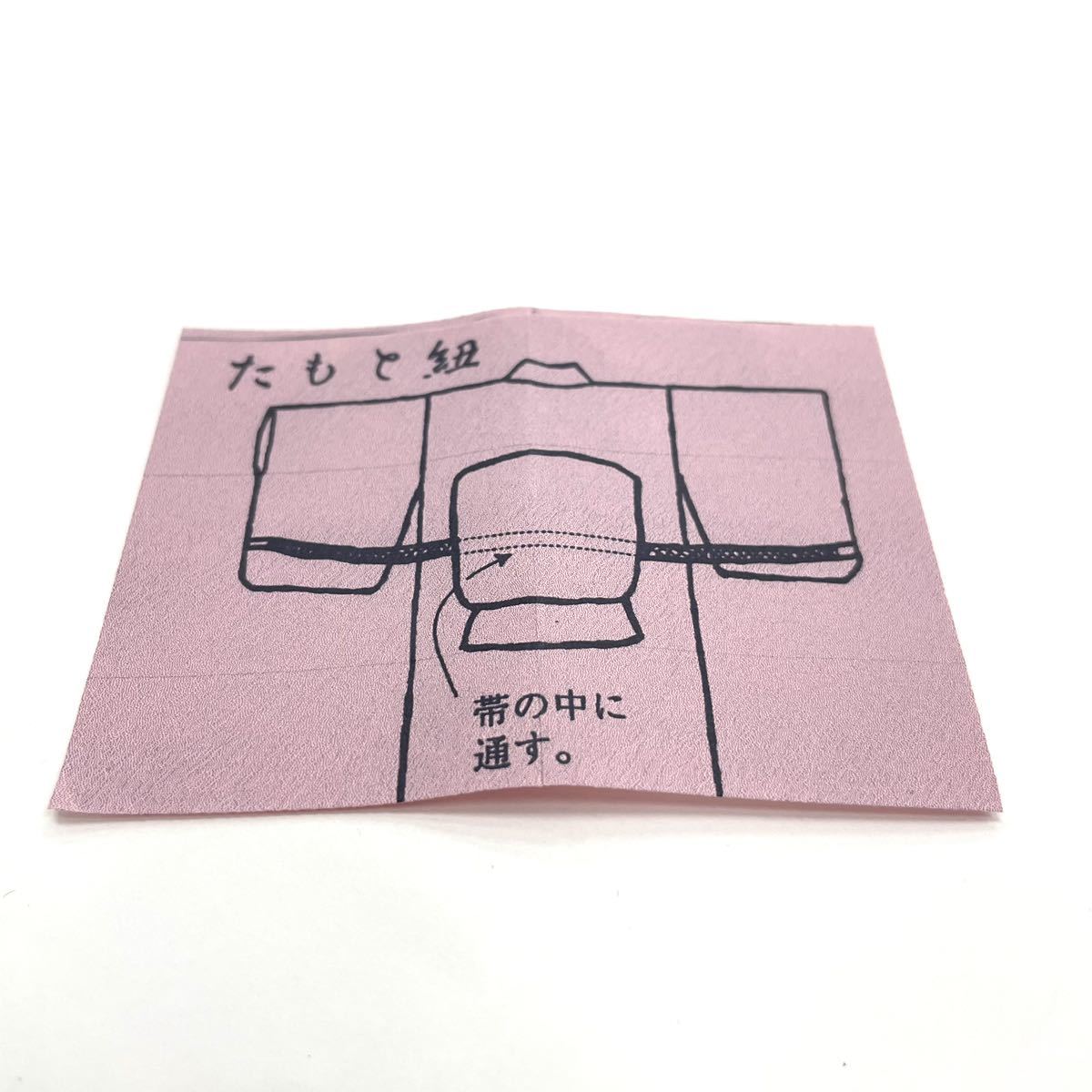 こちらは帯のお太鼓の内側を通して両袖をクリップで挟むタイプの和装小物となっており、着物姿でのお食事時や軽作業時に袖口元を汚さずスッキリとさせてくれるタスキ紐代わりとなる和装アイテムでございます。