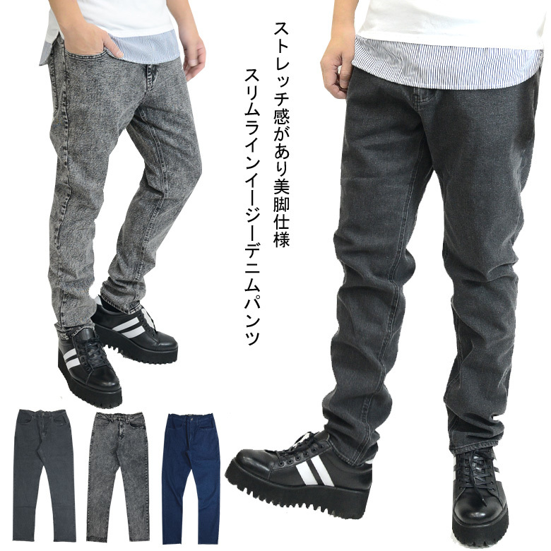 [商品ポイント] ストレッチパンツ/デニムパンツ/無地/イージーパンツ/ジップフライ/