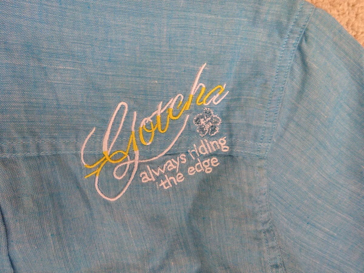 ■GOTCHA ガッチャ★麻100% リネン100% ロゴ刺繍 とてもオシャレな長袖シャツ リネンシャツになります。 ■お色は青系になります。 サイズ表記はSです。 素材: 麻100% ■左胸&後ろ右肩下に刺繍があり、右袖口にタグがあり、とてもオシャレな1枚です♪ ■目立つようなシミ・汚れなどはなく、着用感も殆どなく、全体的とても綺麗な状態です。美品ですが、USEDとして上記の状態をご理解いただける方のご入札をお願いします。 | |||