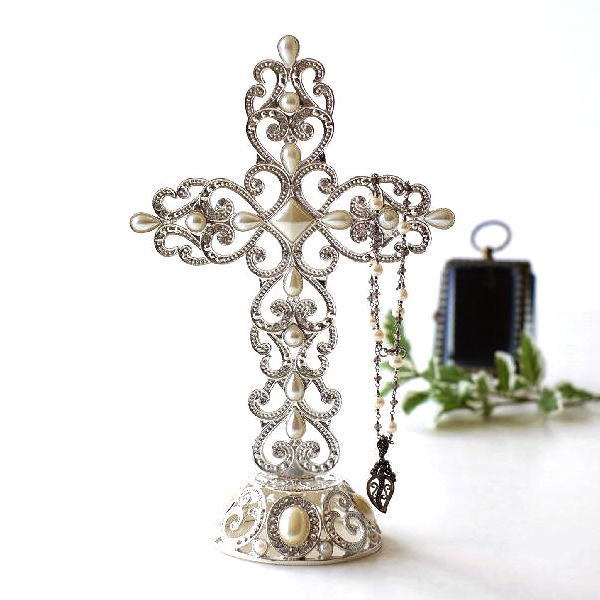 キラキラと華やかで美しい クロスのアクセサリースタンド ホワイトメタルに パール、ラインストーンを埋め込んだ 大き目サイズの ラグジュアリーなスタンドです ネックレスやバングルなど ゴージャスに飾れそう・・・ 小物やグリーン、フレームと一緒に置いても パッと華やぐ空間が作れそうです 商品名 : キラキラCROSSのアクセサリースタンド パール 商品番号 : vin3741 全体のサイズ(cm) : 幅14.5×奥行7.7×高さ23 材質 : 合金 ラインストーン パールビーズ 重量 : 260g 生産国 : 中国 ※透明プラスチックの化粧箱入りです ※僅かながたつきはご容赦ください ※ディスプレイによる色の違いはご了承下さい |
