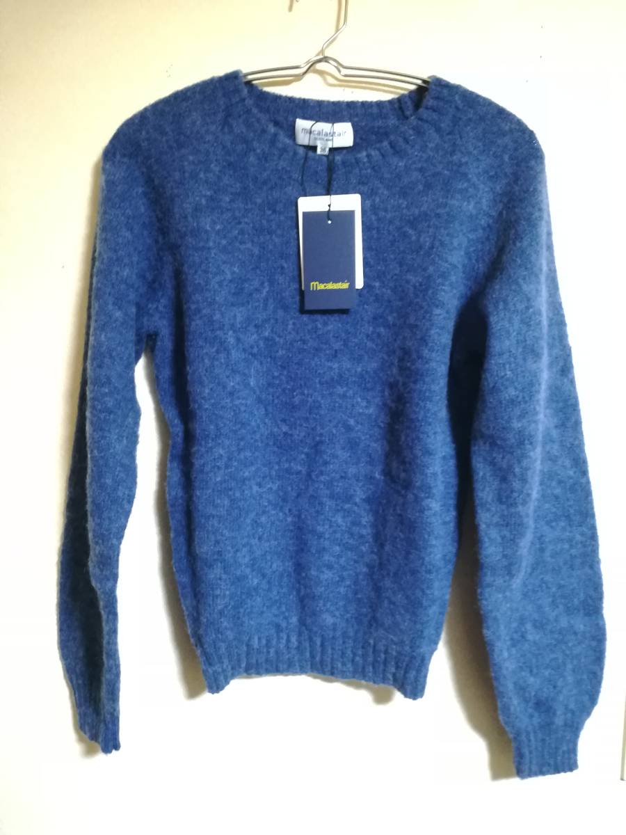 新品 MACALASTAIR クルーネックニット ウール プルオーバー 長袖 青 サイズ36