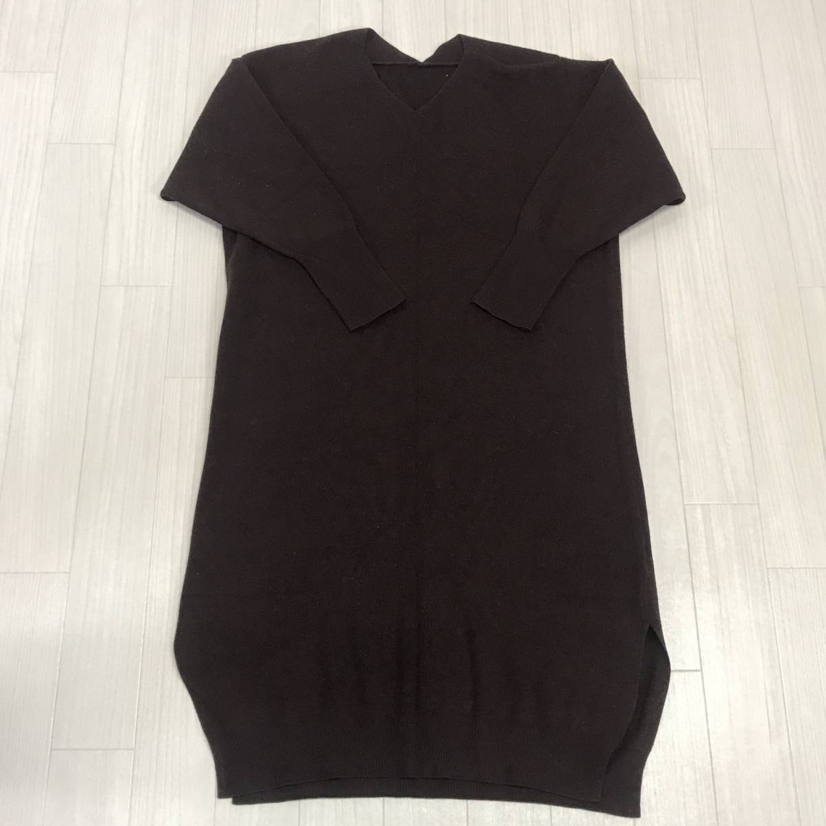 Y0283 ROPE' PICNIC ロペ ピクニック レディース ワンピース ニット 長袖 ロング丈 サイズ38 Mサイズ ブラウン 茶 無地 毛素材含 シンプル