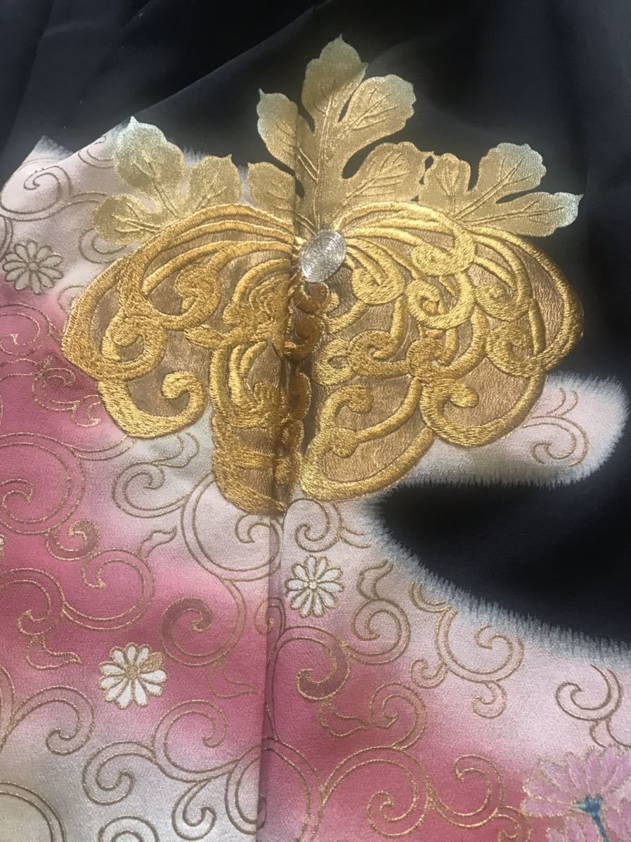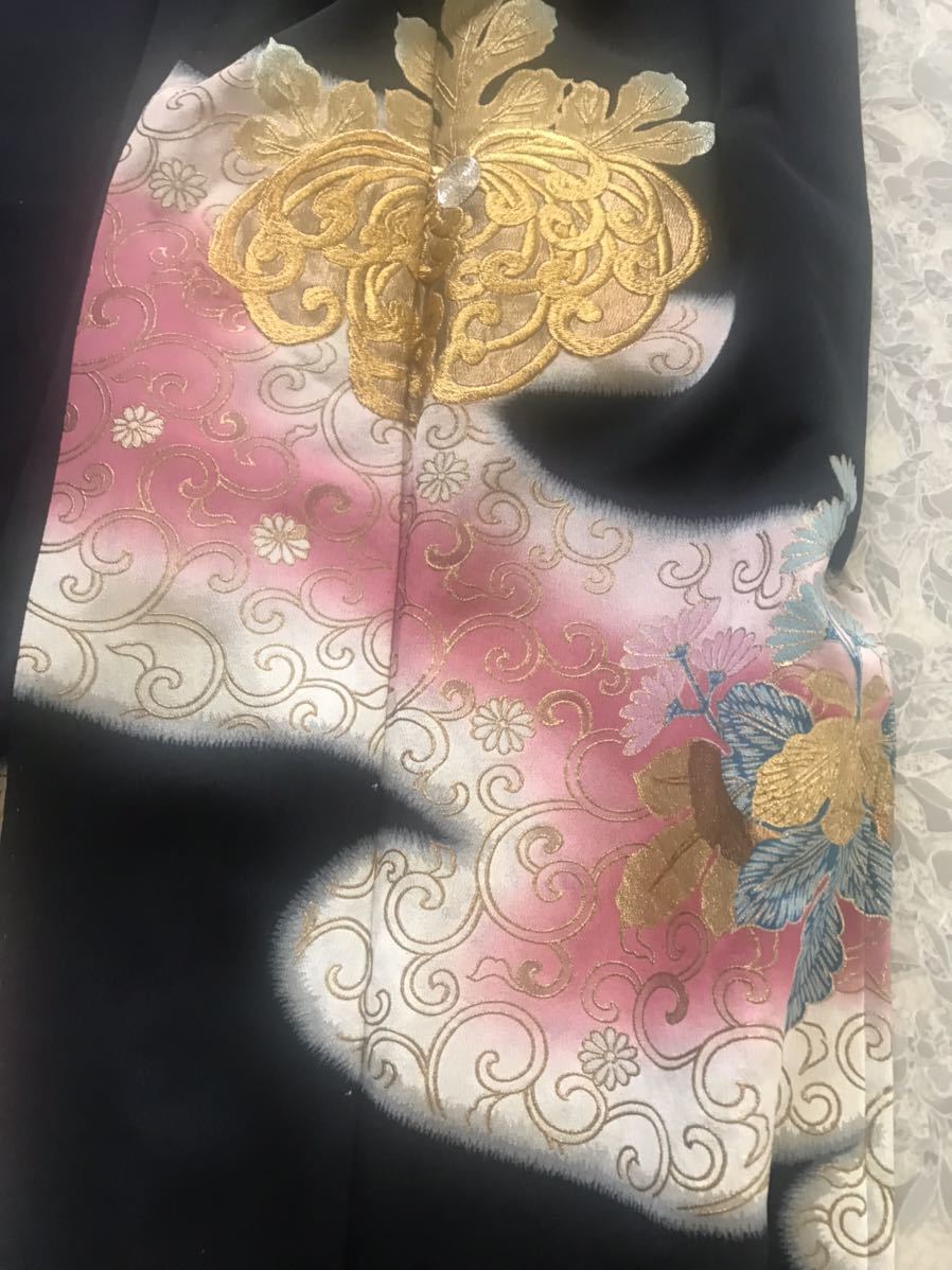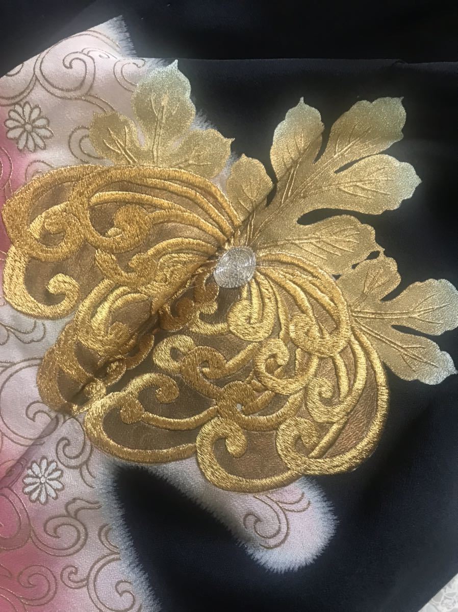 | 絹 留袖 金刺繍菊 リメイクにも | |