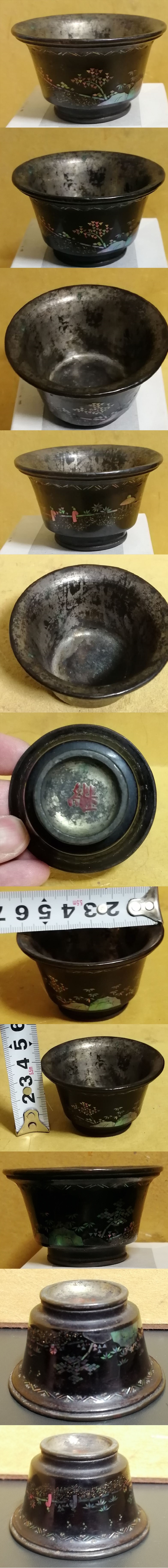 明代 時代漆芸 螺細 酒杯 紅漆銘