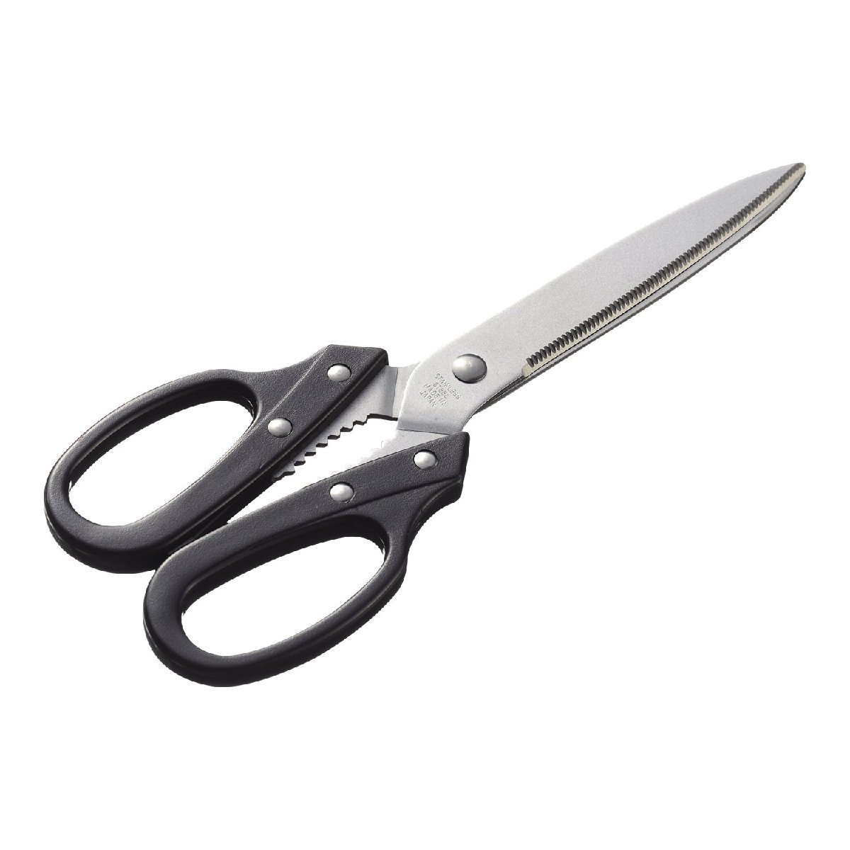 キッチンバサミ・サイズ:幅85x全長220mm・材質:刃部SUS420J2(刃物用ステンレス鋼)ハンドル部 ABS樹脂・生産国:日本・刃部:10.5cm・平均的なキッチンバサミ(刃部7cm)よりも3.5cmも刃が長い!説明 サイズ:幅85x全長220mm 質量:132g 材質:刃部SUS420J2(刃物用ステンレス鋼) ハンドル部 ABS樹脂