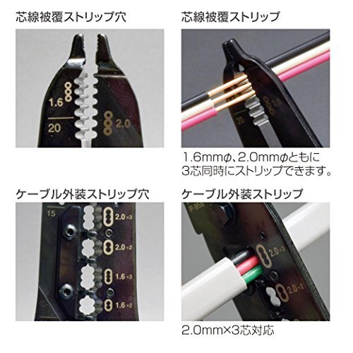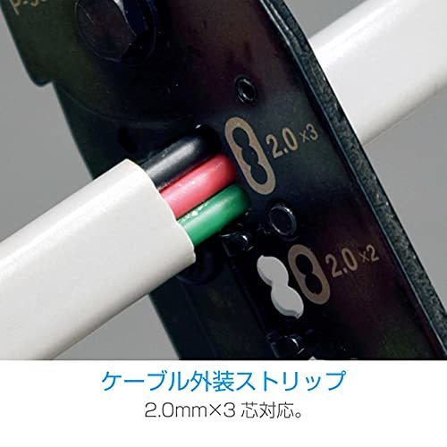 VVFストリッパー(P-958)・ P-958・・Style:VVFストリッパー(P-958)・重量:210g・生産国:日本・芯線被覆ストリップ適応:VVFケーブル/EM-EEFケーブル(エコ電線)1.6mm×3/2.0mm×3・ケーブル外装ストリップ適応:VVFケーブル/EM-EEFケーブル(エコ電線)1.6mm×2芯/1.6mm×3芯/2.0mm×2芯/2.0mm×3芯・切断能力:VVFケーブル/EM-EEFケーブル(エコ電線)1.6mm×2芯/1.6mm×3芯/2.0mm×2芯/2.0mm×3芯VVFケーブル2.0mm×3芯に対応「測る」「剥く」「切る」「のの字曲げ」作業がこの工具一本で可能です 慣れない方も芯線被覆を傷つけにくい、ストリップアシスト用バネ付 エコ電線(EM-EEFケーブル)も軽い力でストリップ可能