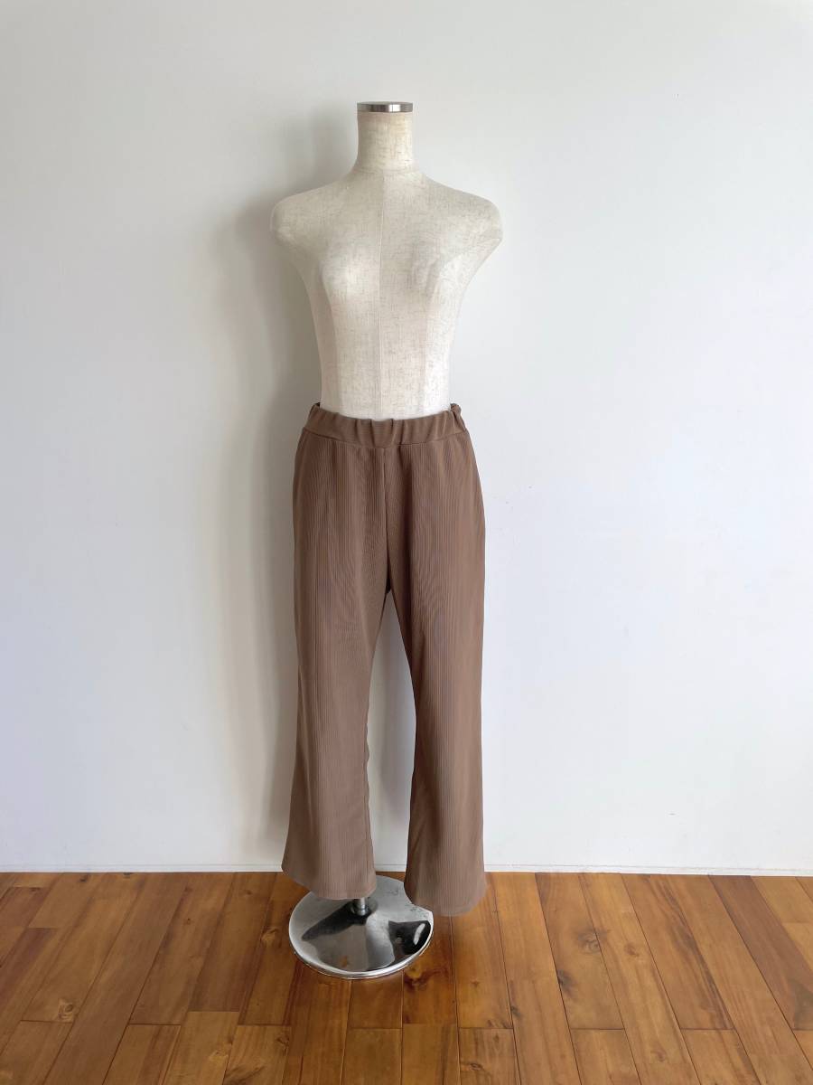 ナノユニバース nano universe/パンツ/イージーパンツ/スリット/F/ブラウンベージュ/化繊ゴムウエスト/リブニット/美品