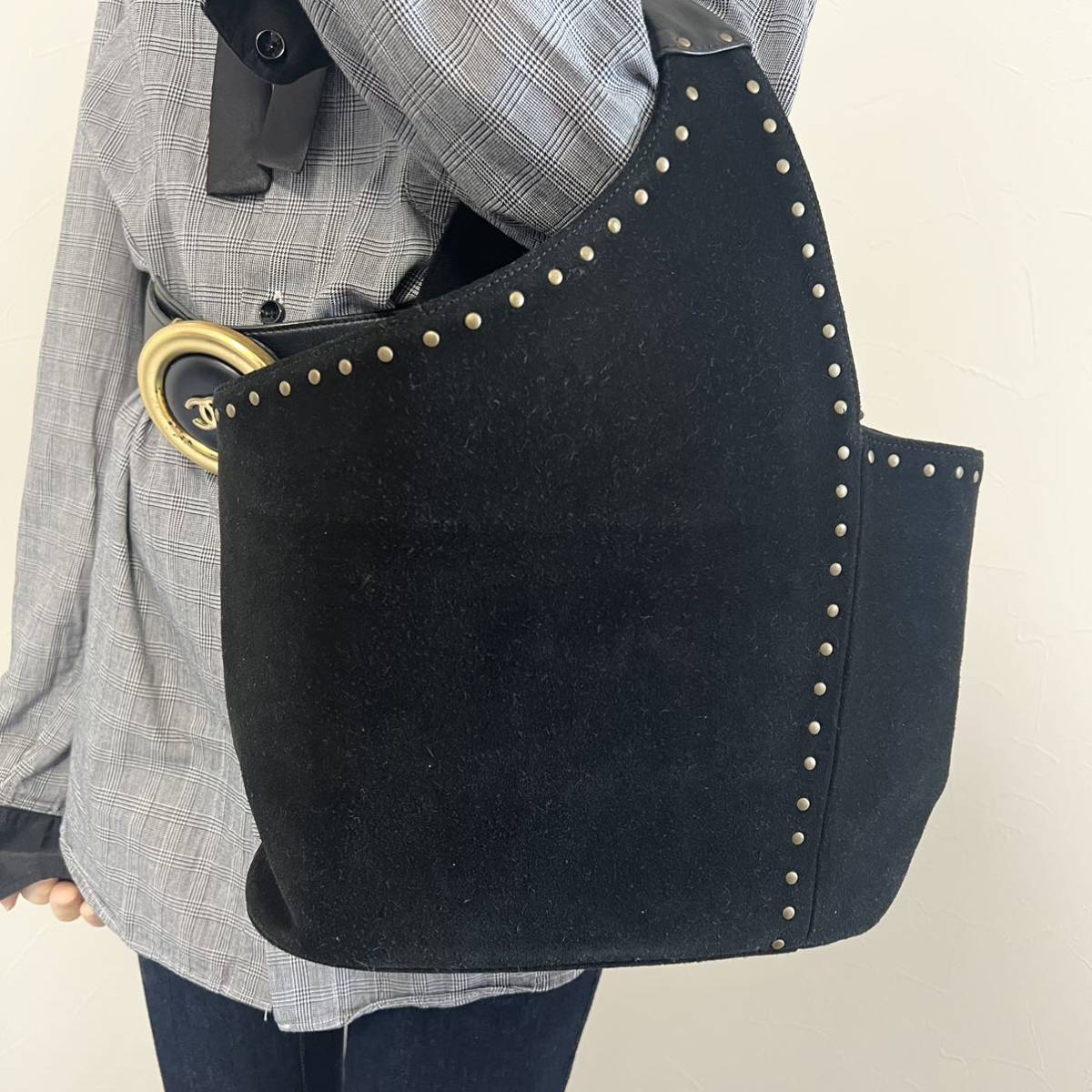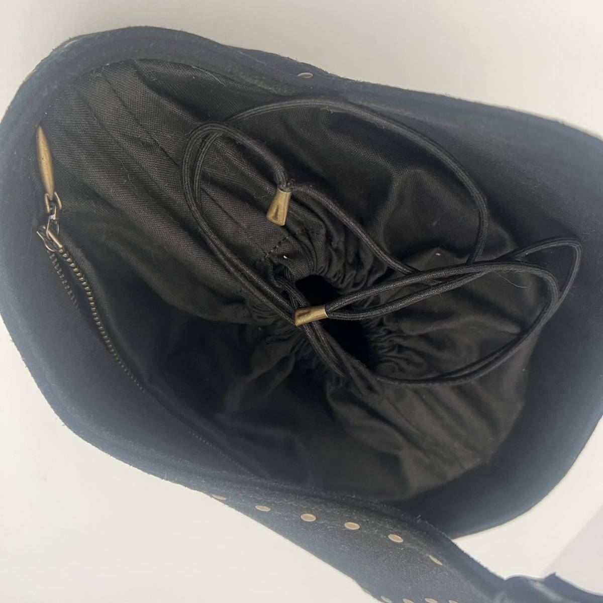 《デザイン》ハンドバッグ スエード×レザー 本革 スタッズ カバン 鞄 バケット