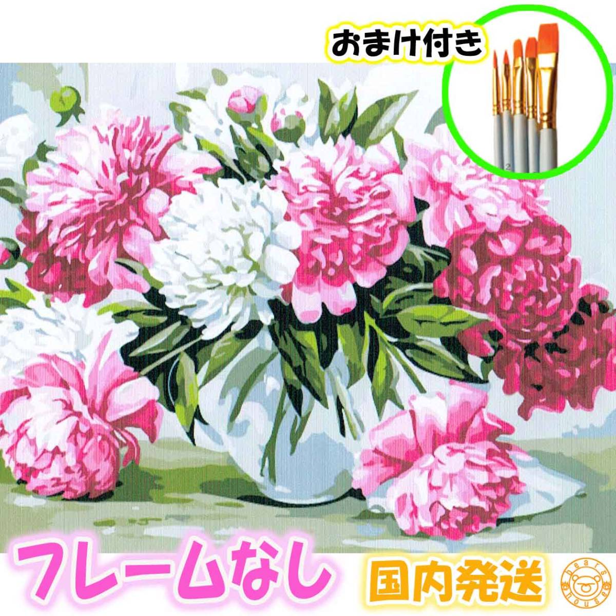 ☆おまけ付き☆【フレームなし】 数字ぬりえ セット 大人の塗り絵 絵の具付き 花 flower インテリア 絵画 ジグソーパズル 油絵風 r-025