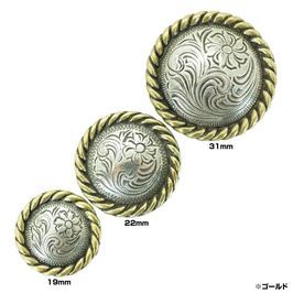 こちらは「ウェスタン コンチョ ラウンドロープ [ ゴールド/22mm(7/8インチ) / 通常ネジ ]」のご購入ページです。 コンチョの詳細