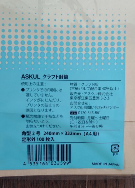 送料サイズの関係で封筒の蓋を折ったまま発送いたします。