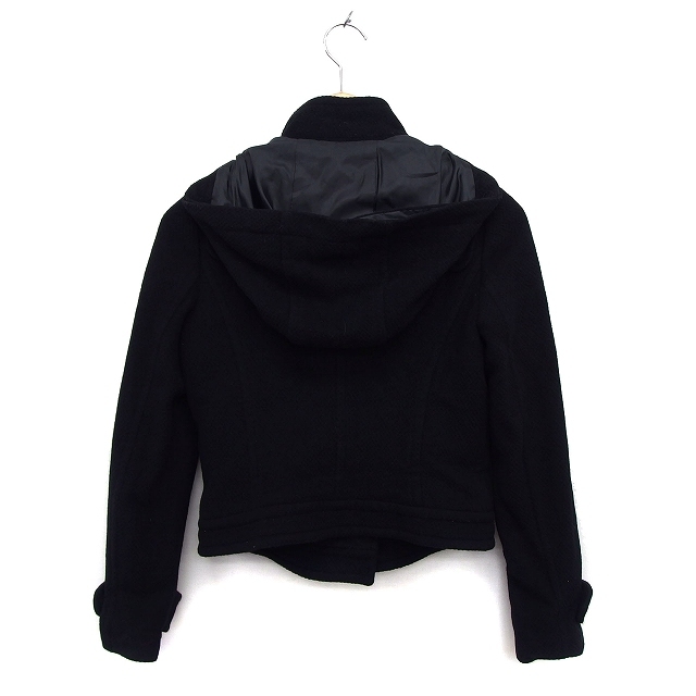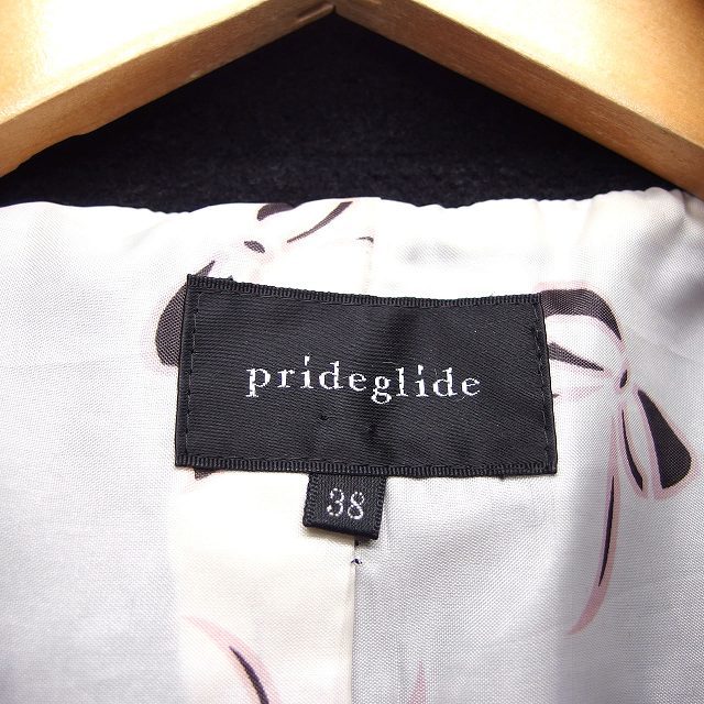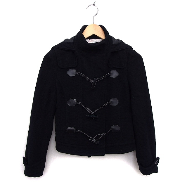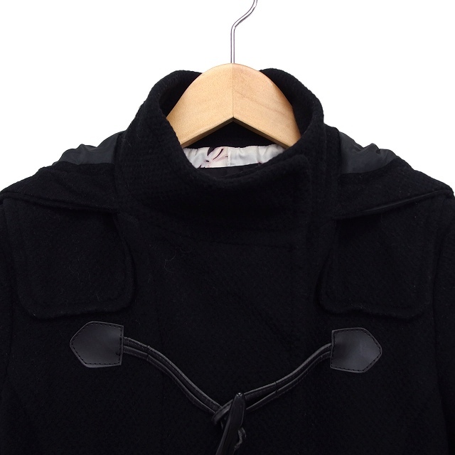 プライドグライド prideglide ダッフル コート アウター ショート アンゴラ混 ウール フェイクレザー 38 黒 ブラック /NT18 レディース