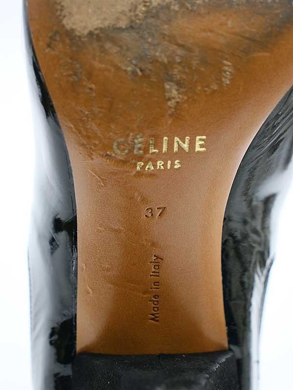 CELINE セリーヌ サイドゴアエナメルハイヒールパンプス ブラック 37 ITJEYO992IKA