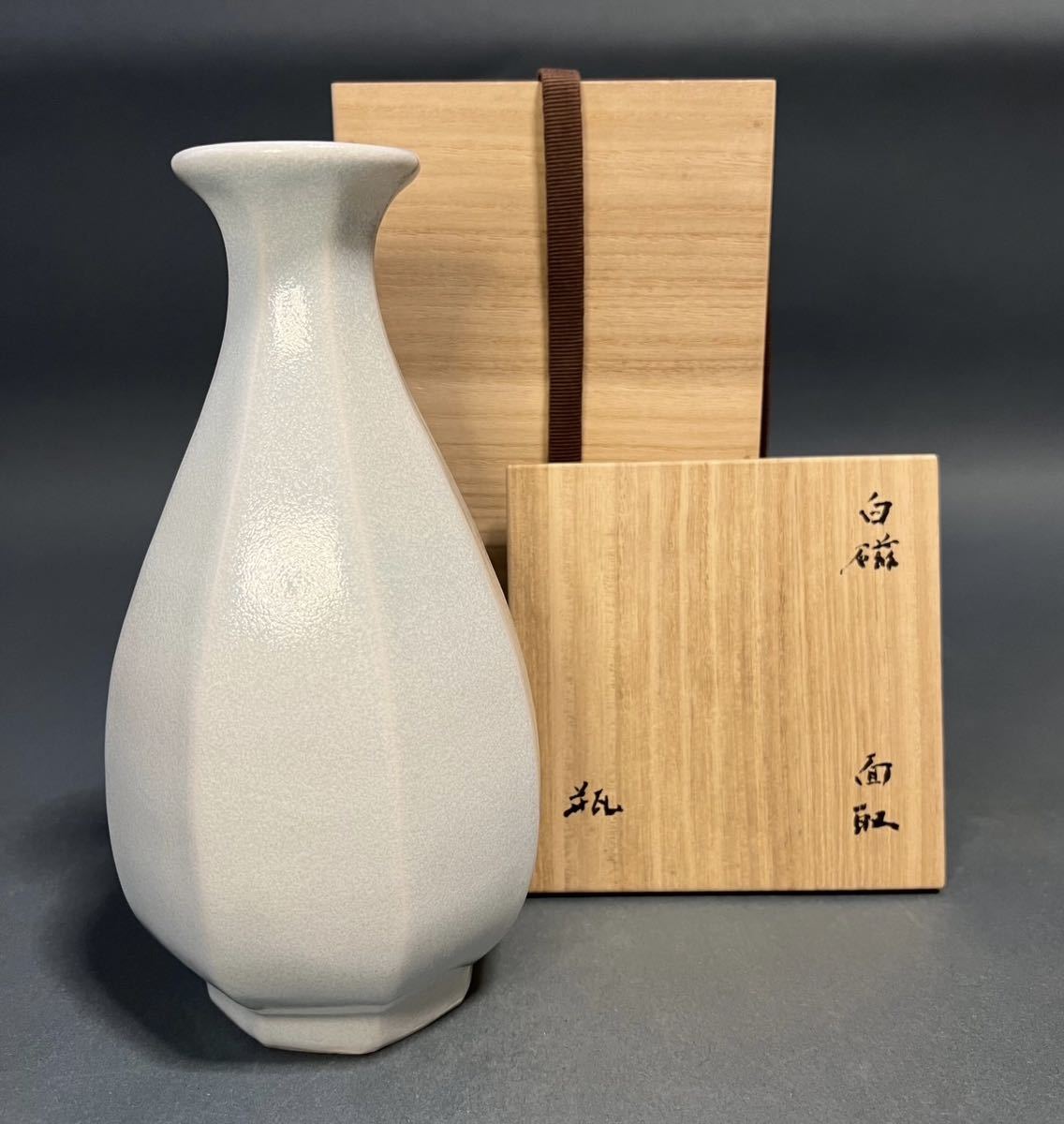 人間国宝近藤悠三に師事し京都府無形文化財(陶芸)保持者、竹中浩氏の白磁面取花瓶になります。