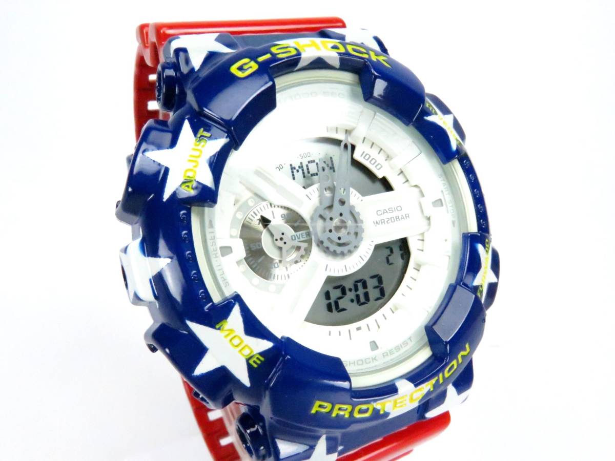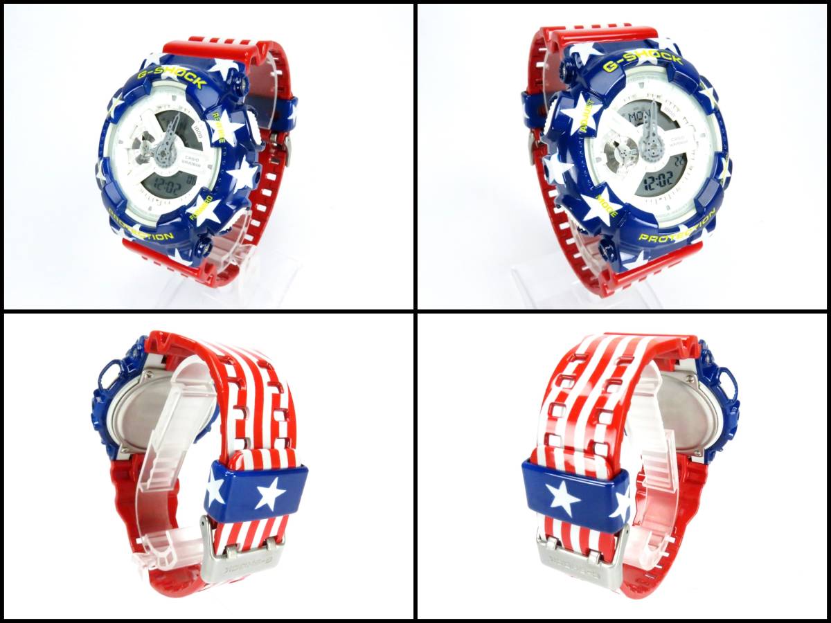 【管理番号F1-3462】 ----------------------------------------------- ◆◆ 他にも 【 G-SHOCK や 関連アクセサリー 】 多数出品!! ◆◆ ★★★ →→ 【ここをクリックすると一覧が見れます】 ←← ★★★ ----------------------------------------------- ★商品の状態 [USED CUSTOM] 商品名 CASIO G-SHOCK オリジナル カスタム ペイント GA-110 デジタル & アナログ アメリカン フラッグ 星条旗 -------フラッグ柄塗装----------- アメリカ国旗の星条旗デザイン!! 即完売の人気商品です。 この機会をお見逃しなく!! -------------------------------------------------- USEDベースを、リメイクカスタムした ここだけのオリジナル デザインです。 他の人とは、ひと味も、ふた味も違う 希少な限定デザインが手に入ります。 在庫販売ですので、ショップ販売より 大幅にお値引きして出品しております。 1点物の限定品ですので、売れた 商品は、次回作成まで手に入りません。 よく再入荷予定等を御質問されますが 新たに作成する時期は未定です。 1人で、1点1点手作業にて作成の為 最短でも2週間程度掛かります。 デザインによっては、今後作成しない 1回限りの限定品も御座います。 気に入った商品は、売り切れる前に 即決購入される事をお勧めします!! -------------------------------------------------- ★★ カスタム完成後は、未使用です ★★ 【塗料は特殊高品位塗料を使用しております】 ◆1点物限定販売です。 ◆塗装にはエアブラシを使用しております。 ◆塗装をした後、少しでも長持ちさせる為に 仕上げ工程にて、全てのパーツに 高品位クリアーのコーティングにて 保護を施しております。 (パーツにより柔軟度を使い分けています) ◆撮影に使用している小物やディスプレイスタンド ハンドマネキンは付属致しません。 ----------------------状態説明---------------------- ◆USEDベースに、カスタムを行っております。 ◆ガラス面(風防)に線傷が御座いますが、 比較的綺麗な状態です。 ◆電池は新品に交換済み。(日時も設定済み。) ◆防水パッキン グリスアップ。 ◆基本動作確認済。 (モード移行・バックライト発光) ----------------------カスタム内容説明---------------------- ◆ベゼル・ベルトループを (ブルー)に塗装。 ◆ベルトを(レッド)に塗装。 ◆ベゼルの文字部分に (イエロー)でスミ入れ。 ◆ベゼル・ベルトループに (ホワイト)で星柄塗装。 ◆ベルトに(ホワイト)でボーダー柄塗装。 This product is custom painted Base model It is a G shock of second-hand goods. Battery new goods exchange already The waterproof packing is grease-up. ■★■★■★ その他 多数出品中 ★■★■★■ 他にもカスタムGショックやパーツ その他、多数出品させて頂いておりますので、 お時間が御座いましたら是非当方の 出品物を御覧下さい。 出品ページ内の【出品者情報】の欄に、 【出品者のその他のオークションを見る】 という項目が御座います。 そちらより一覧を見て頂けます。 --------------------------------------------------------- カシオ Gショック 腕時計 デジタル アナログ メンズ レディース サイズ フリー ビッグフェイス ----------------------------------------------- ◆◆ 他にも 【 G-SHOCK や 関連アクセサリー 】 多数出品!! ◆◆ ★★★ →→ 【ここをクリックすると一覧が見れます】 ←← ★★★ ----------------------------------------------- | |||