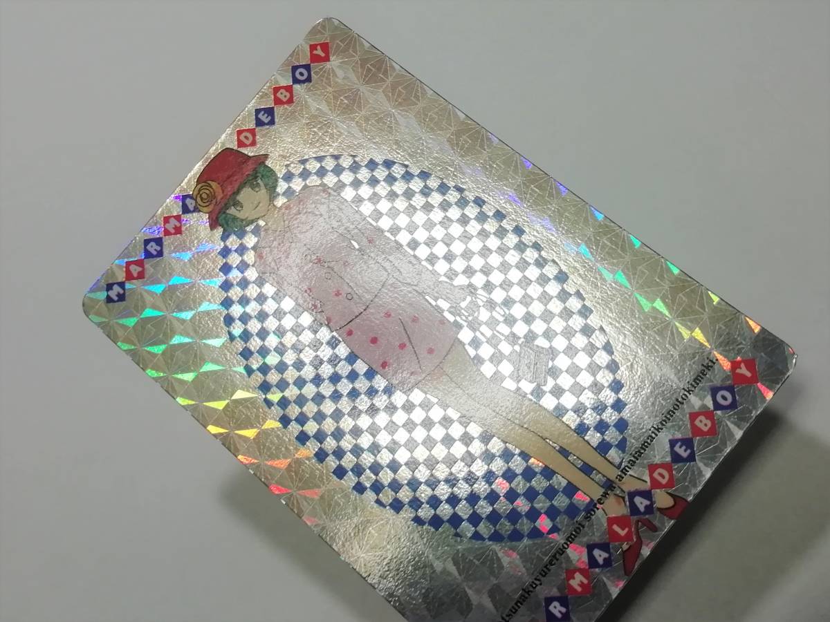 『ママレード・ボーイ』1994年 アマダ ヒーローコレクションカード No.81 プリズム キラ1枚です。(吉住渉・集英社)■カードダス・PPカードなど在庫有り●【全体的な状態5段階評価】A・新品同様の良品【カード表面】微キズ【カード裏面】良好【その他】画像をご確認ください。こちらは製造販売から約30年が経過した品です。★状態の5段階評価・S(新品・極美品)A(美品~良品)B(並品)C(部分難の有る品)D(処分品・粗悪品)●その他の傷みなど目視できる範囲でお知らせしています。コレクター目線で厳しめのランクをつけていますがキャンセル・返品はお受けできませんので状態質問などは「入札前」にしていただき、ご理解ご了承の上お買い求めください。【リクエスト出品可能】多作品の1990~2000年頃のカードダス・PPカード類各種の在庫が多数有ります。お探しの品が有る方はQ&A欄よりお問い合わせください。※トレカはほぼ所有していません。※リクエストいただいた方のご購入をお約束するものではありません。