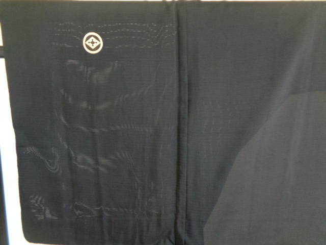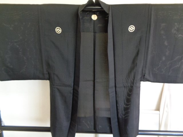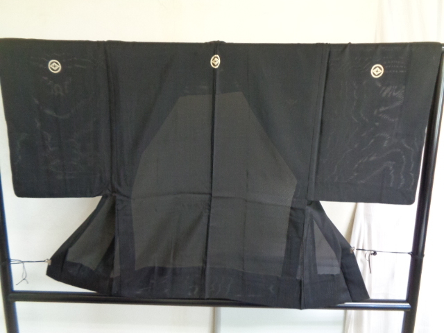 c447-80 羽織 正絹 絽 五つ紋 黒地 喪服きもの 着丈85センチ アンティーク