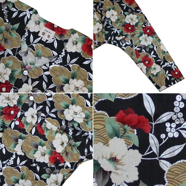 お祭用品/肉襦袢 鯉口シャツ 花柄 222黒 4号(子ども用) お祭り衣装 お祭り用品