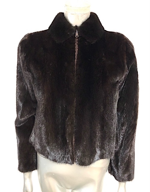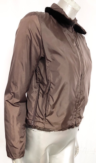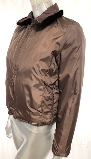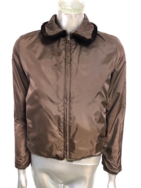 二点落札で送料無料!E30【美品】en recre アンレクレ 高級 ミンク ジャケット コート ジップアップ リバーシブル ブラウン 2 レディース