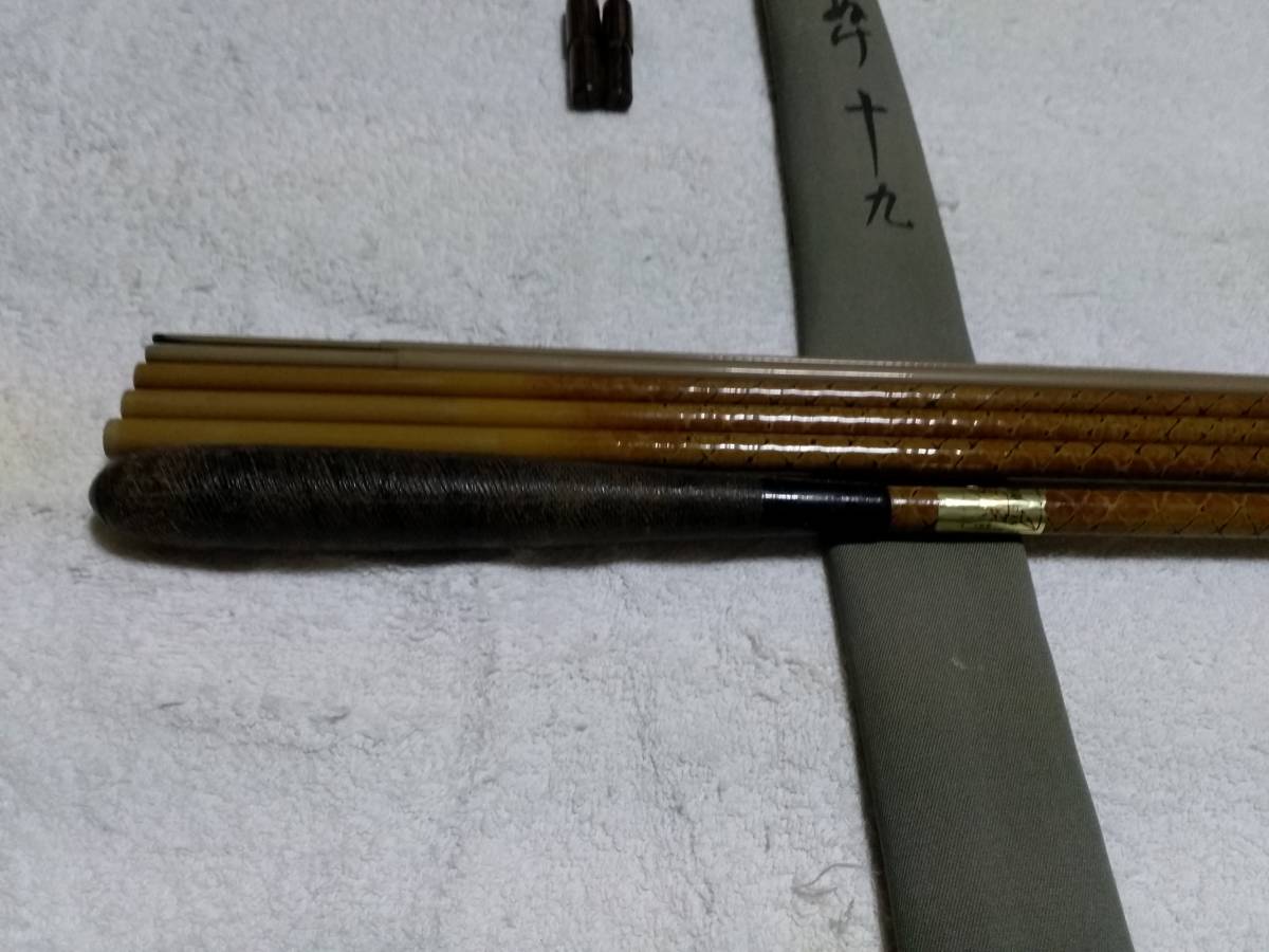 付属品は画像の通り、オリジナルの竿袋(汚れがあります)、口栓になります。商品の状態ですが、口割れ、欠け、深い傷など無く綺麗です。薄い傷が少しありますが、艶もあり良い状態だと思います。私感的には綺麗な状態だと思います。込みが薄くなっています。繋げば分かりませんし、使用には問題ありません。オークション終了後48時間以内にご連絡の方のみご入札下さい。落札後取り引きナビにてご連絡させて頂きます。ご入札後のキャンセル、返品。クレーム等受付られません。送料はヤマト運輸の元払いで、九州から関東まで1600円です。宜しくお願いします。