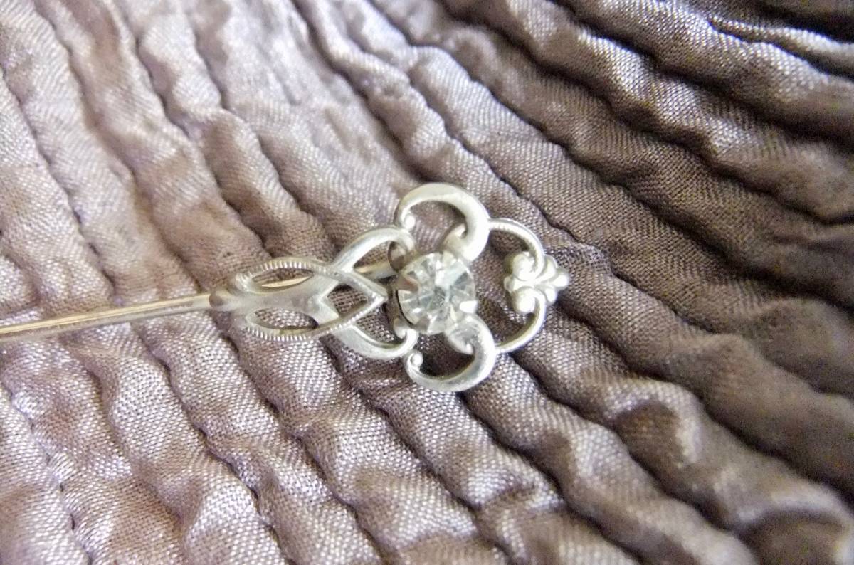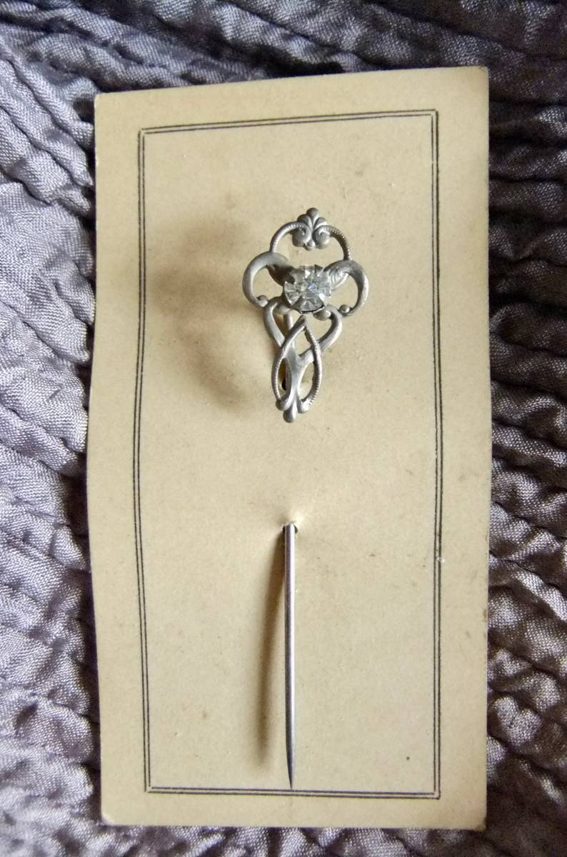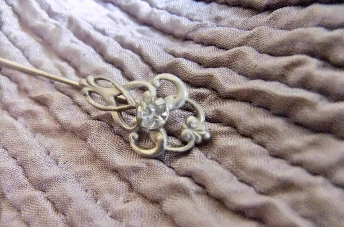 アンティーク :クリアカラーストーン 、アールヌーボーデザインのピン