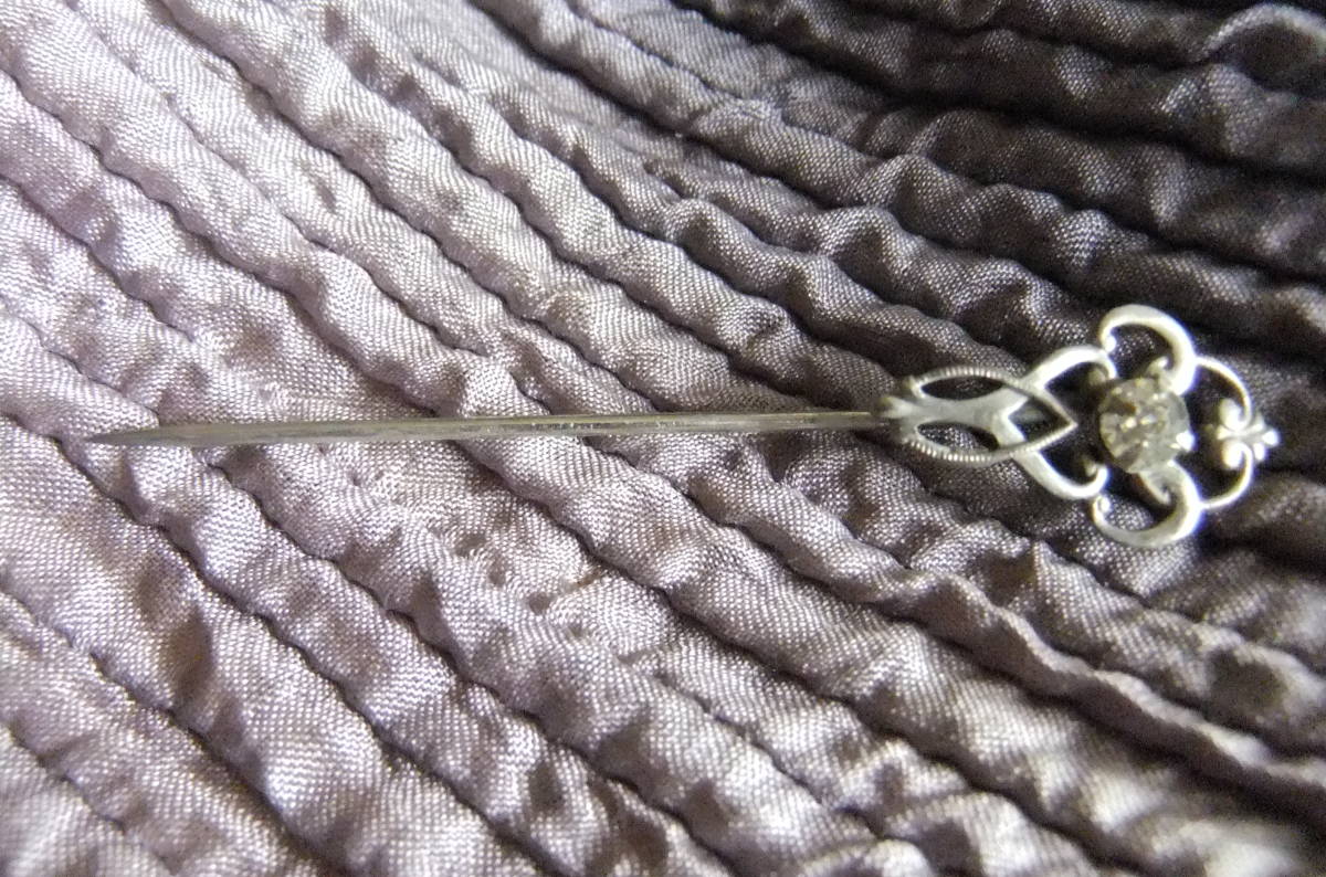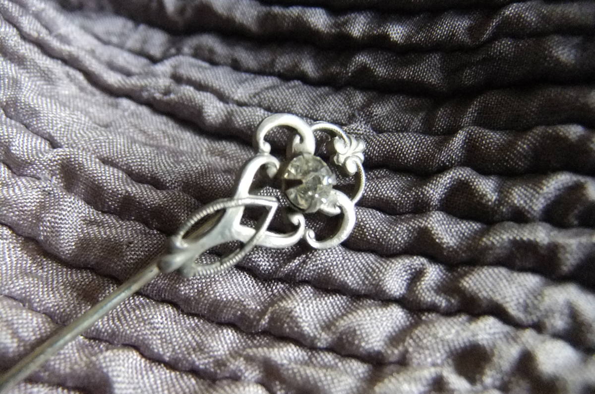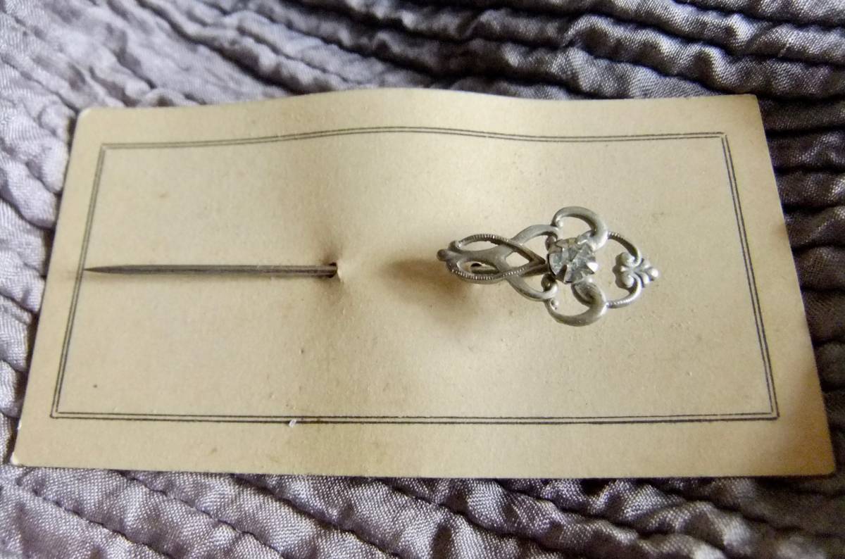 1930年代頃のアンティーク品、クリアカラーストーン 、アールヌーボーデザインのピン。