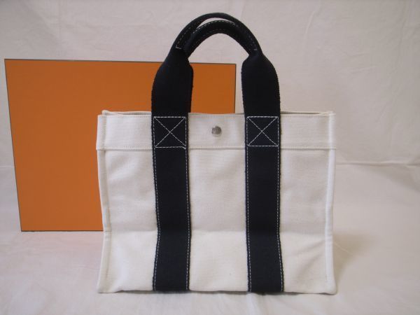 ●エルメス PM 黒×白 ボラボラ トートバッグ マザーズバッグ ビーチバッグ エールライン フールトゥ カヴァル バヤデール コキアージュ A