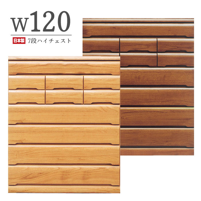 幅120cm 7段 ハイチェスト タンス チェスト 完成品 ハイタイプ 木製 和室収納 家具 洋服タンス 和風 シンプル ブラウン