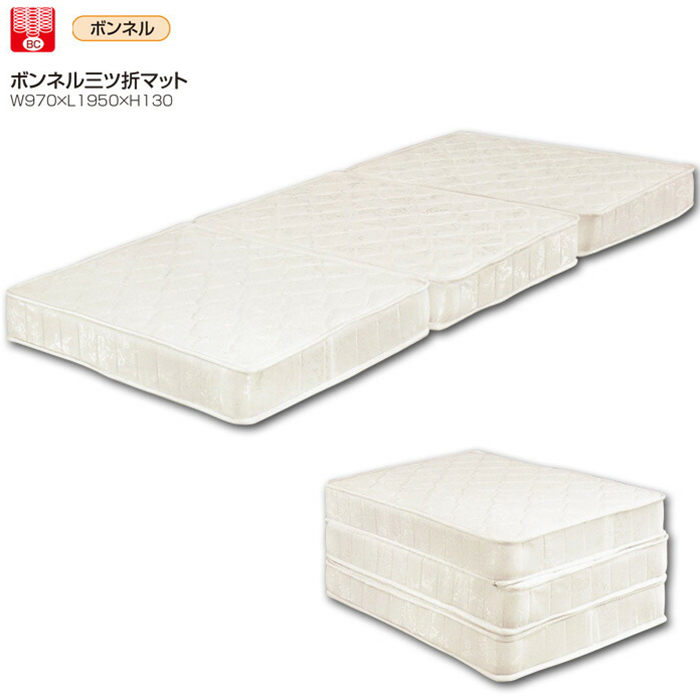 3つ折り シングルマットレス ボンネルコイルマットレス 幅97cm 長さ195cm 厚さ13cm 折り畳み ●ホワイトグレー系
