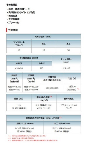 ミドルクラス最速穴あけ※1、高速回転2,200min-1(マキタ調べ)