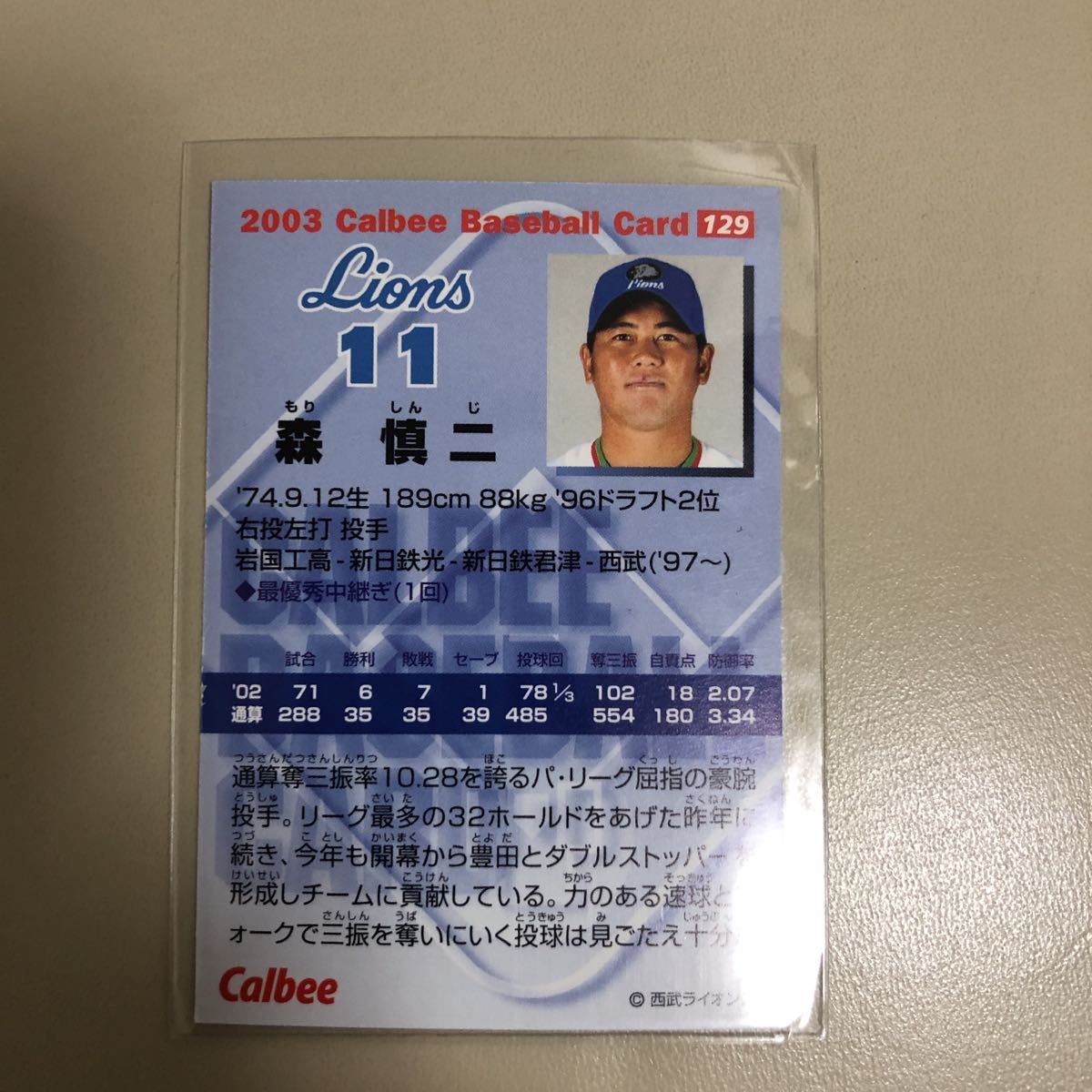 カルビー 2003 129 森慎二(西武)レギュラーカード