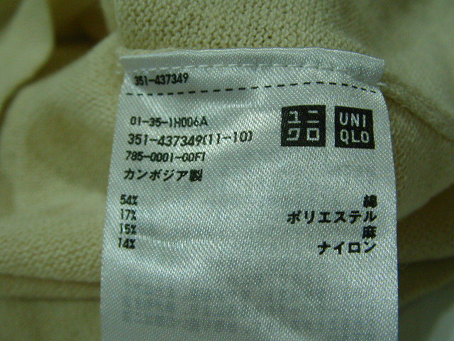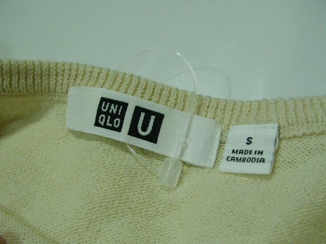ssy5933 ユニクロ UNIQLO U 半袖 ニット プルオーバー アイボリー ■ 無地 ■ リネンブレンド 綿麻混 薄手 Sサイズ