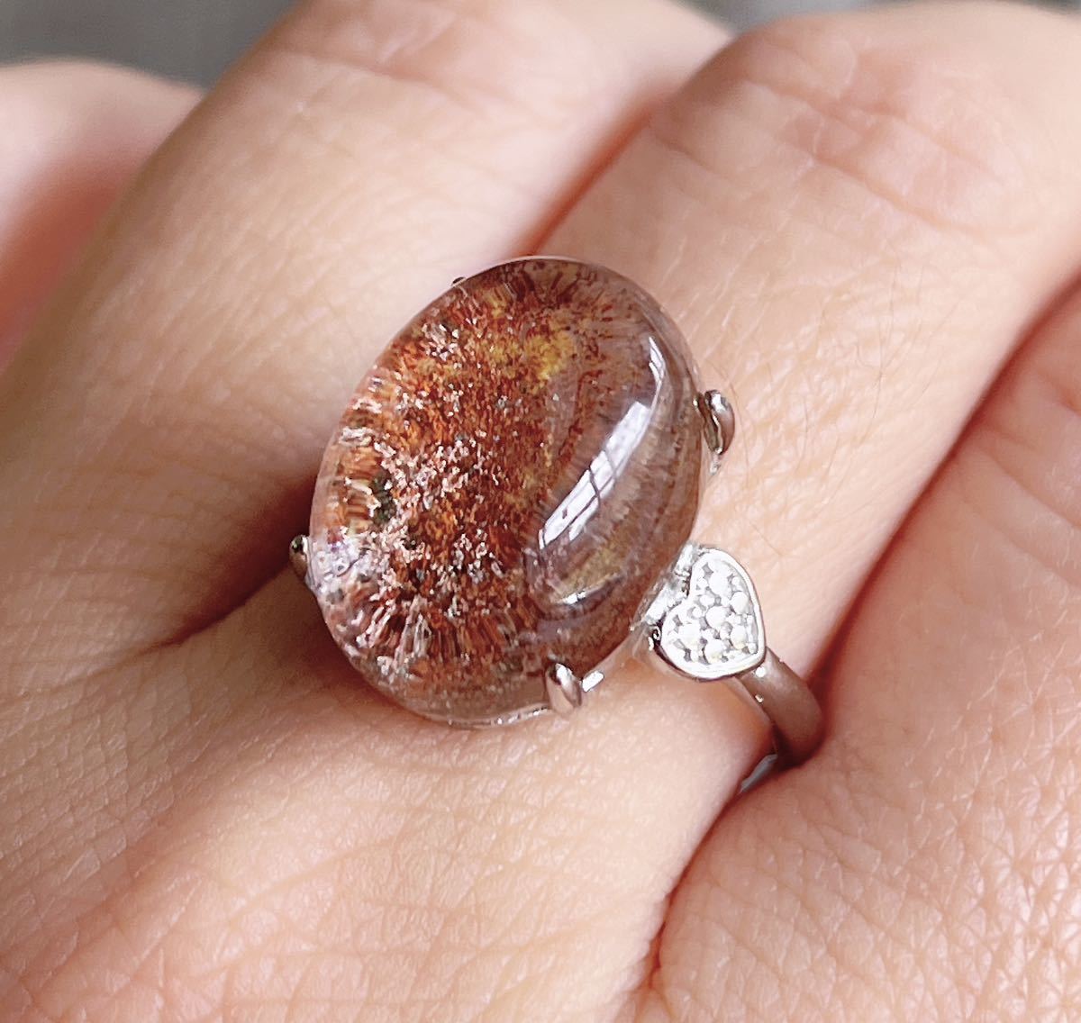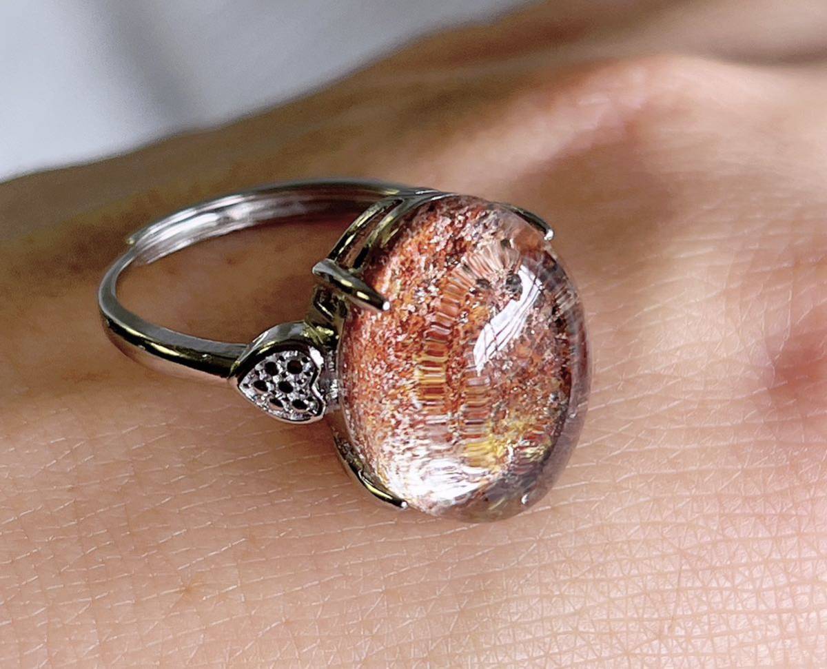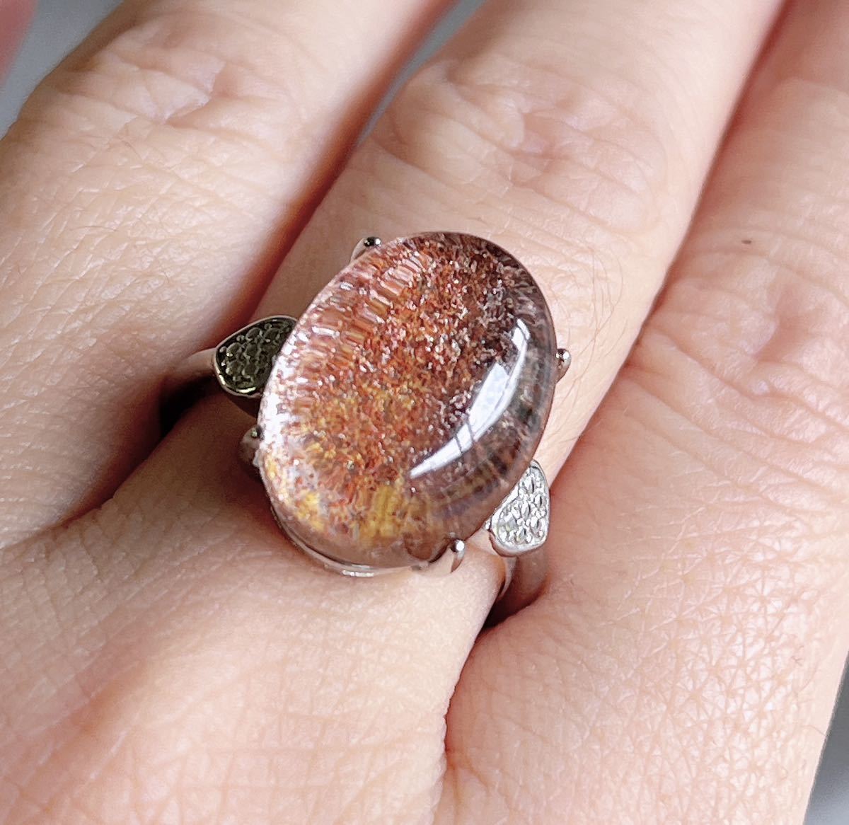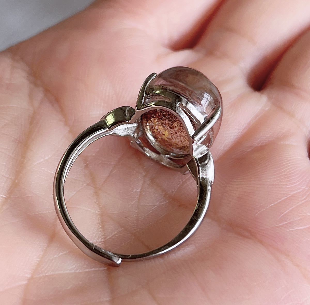 天然石 レッドガーデンクォーツのリングのサイズ約:12mm*16mm*厚さ9mm;